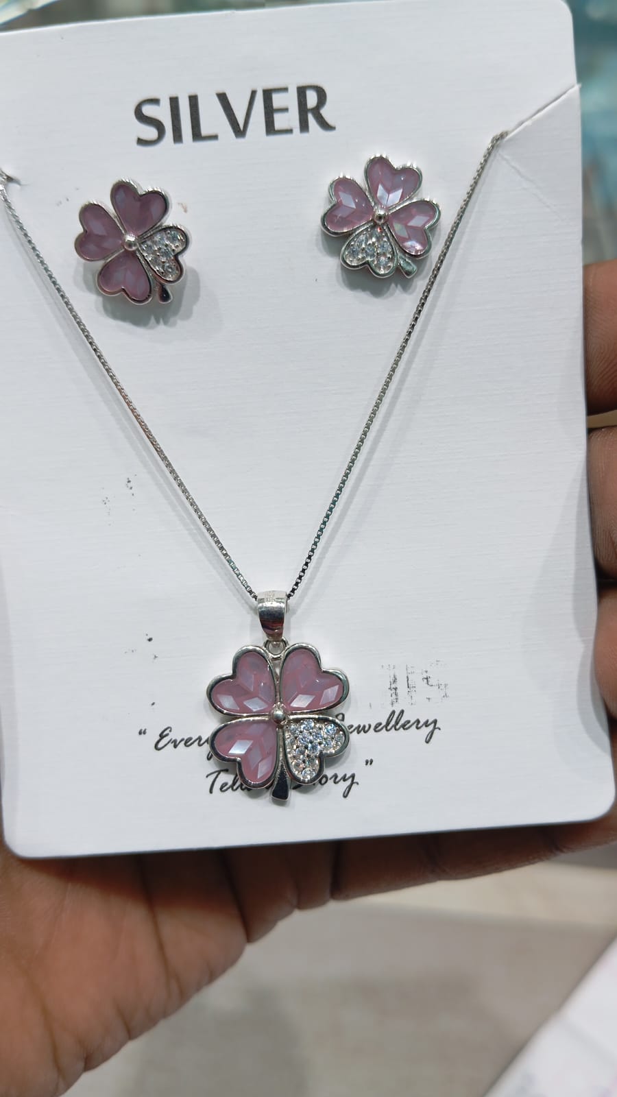 Soft Pink Floral Silver Pendant Set with Matching Earrings