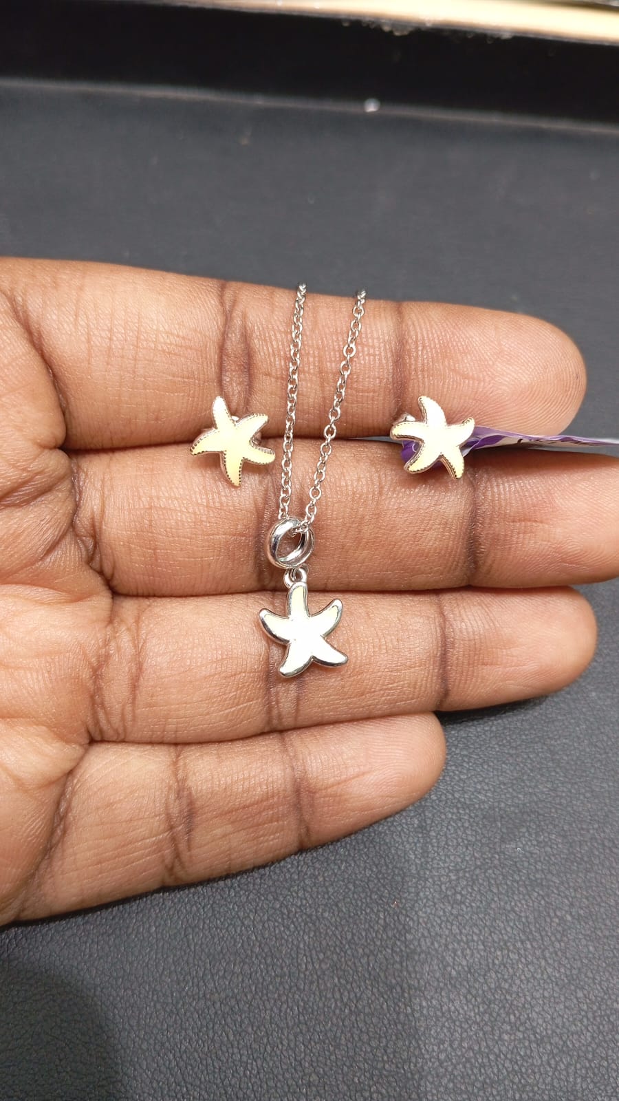 Starfish Pendant with Adjustable Chain & Matching Stud Earrings