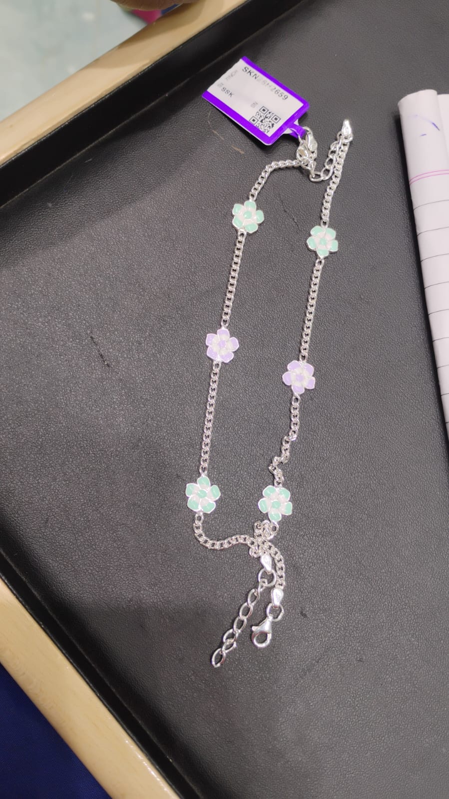 Sterling Silver Baby Anklet with Enamel Flower Charms