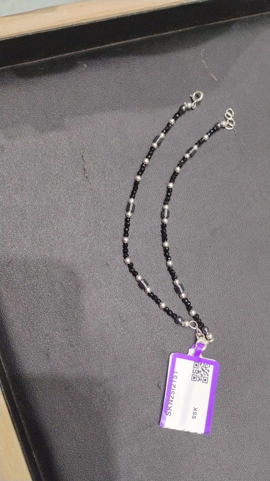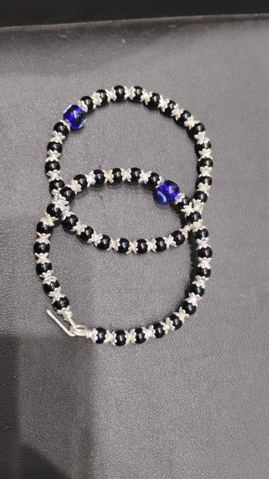 Sterling Silver Black Bead Baby Anklet with Blue Nazar Bead