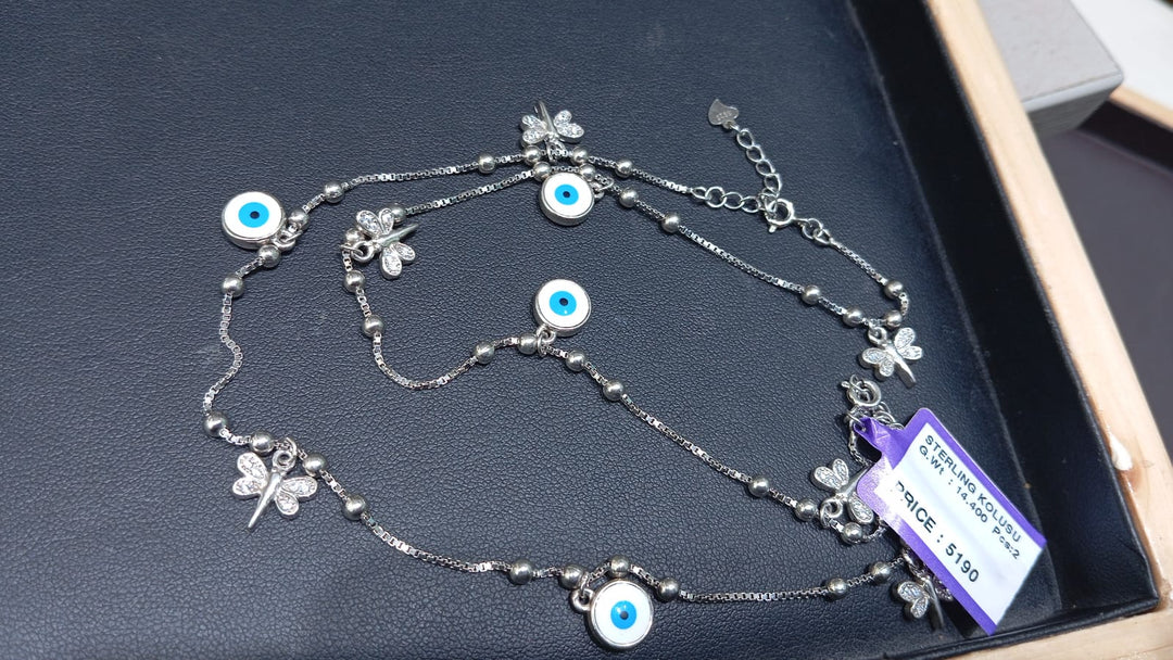 Sterling Silver Evil Eye & Butterfly Charm Anklet