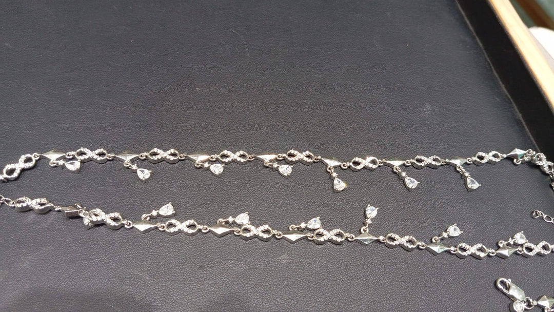 Sterling Silver Infinity Anklet with Teardrop Stone Charms