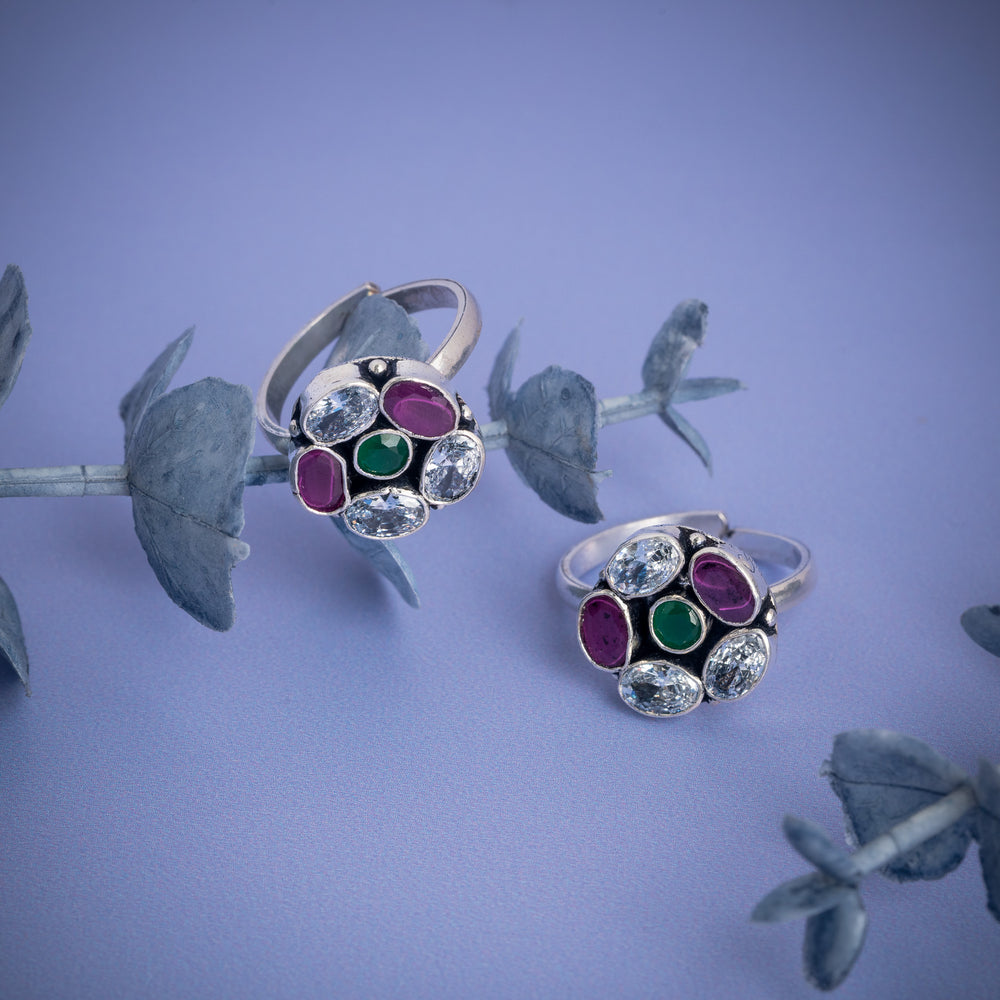Antique Silver Toe Ring with Emerald & Ruby Stones