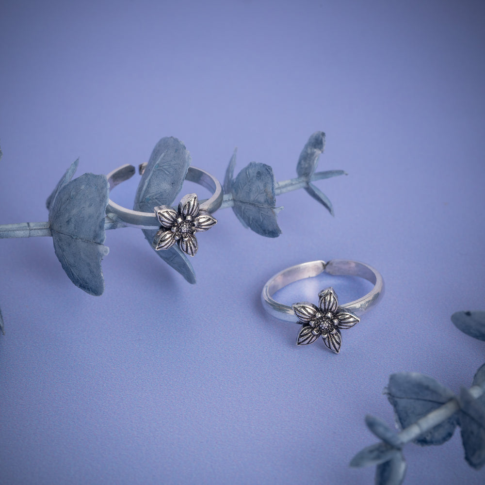 Antique Silver Toe Ring with Traditional Engraved Design