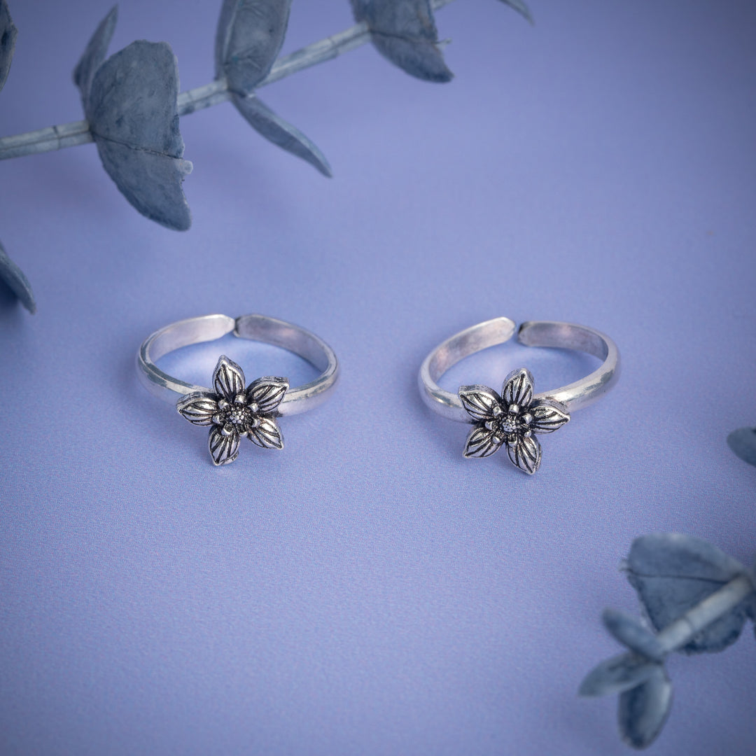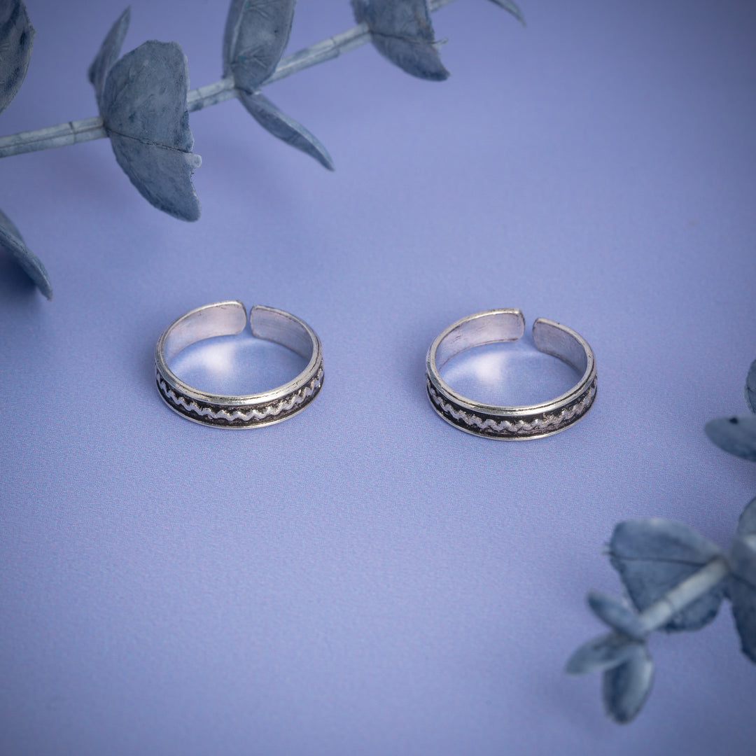 Antique Silver Toe Ring with Engraved