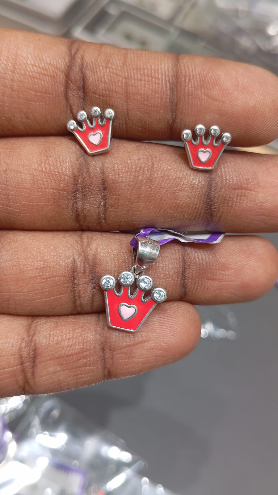 Crown & Heart Pendant and Stud Set