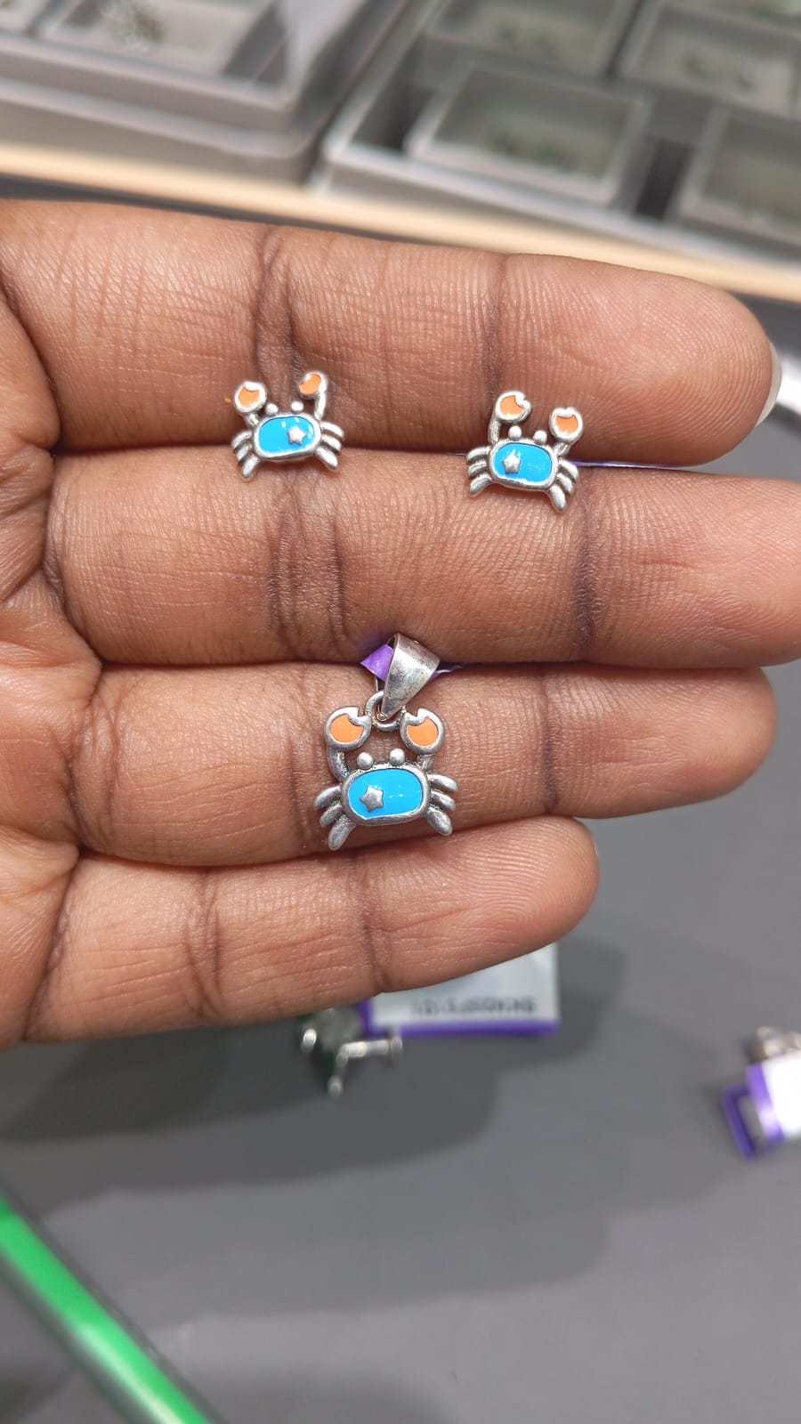 Crab Pendant and Stud Set