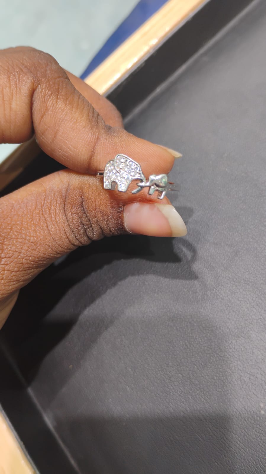 Crystal-Studded Elephant Silver Ring
