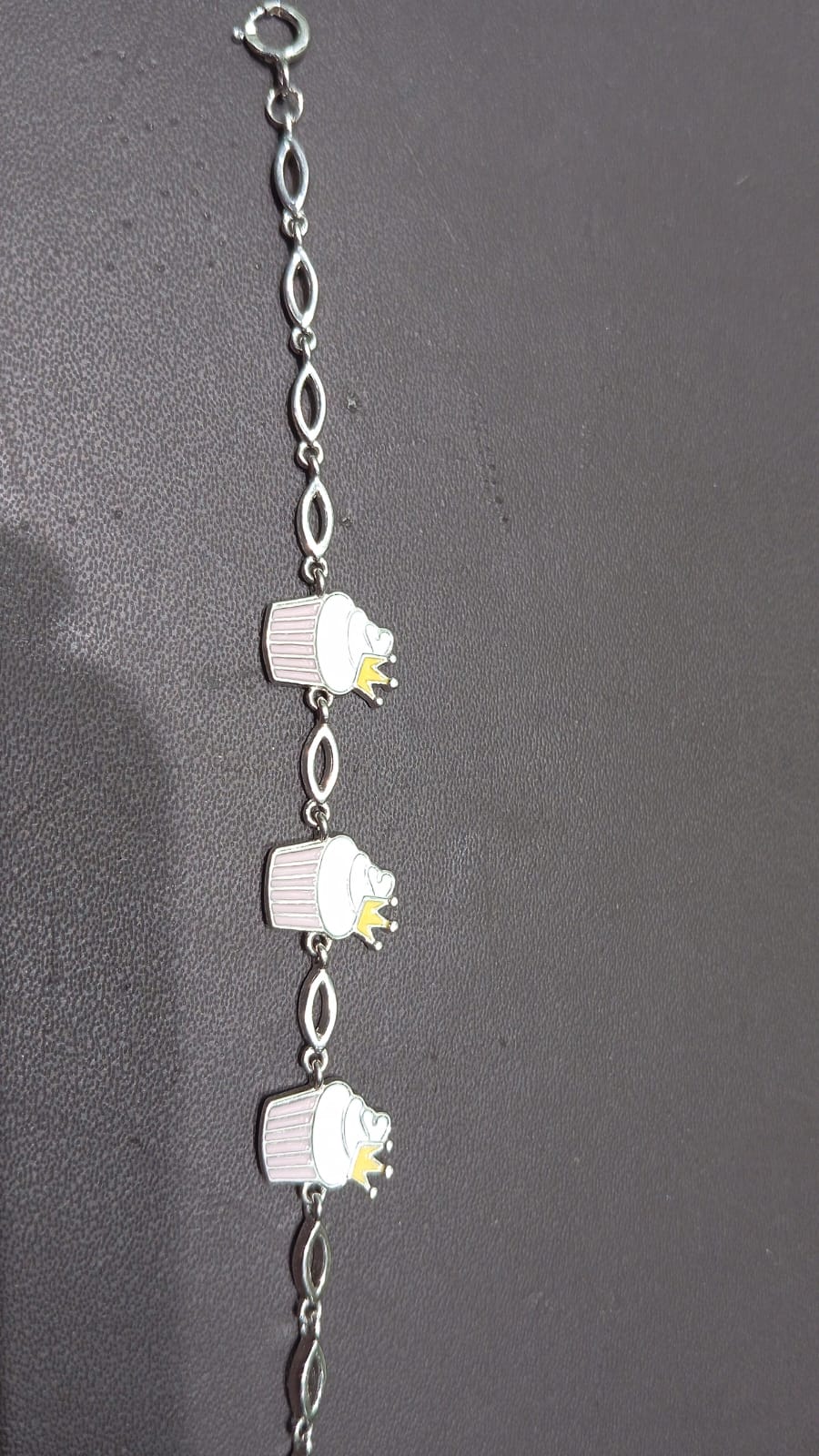 Cupcake Crown Charm Adjustable Silver Bracelet