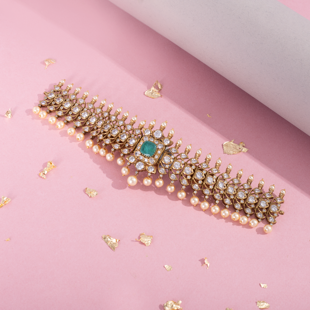 Emerald & Ruby Stone Annam Leaf Design Gold Plated Screw Bangles