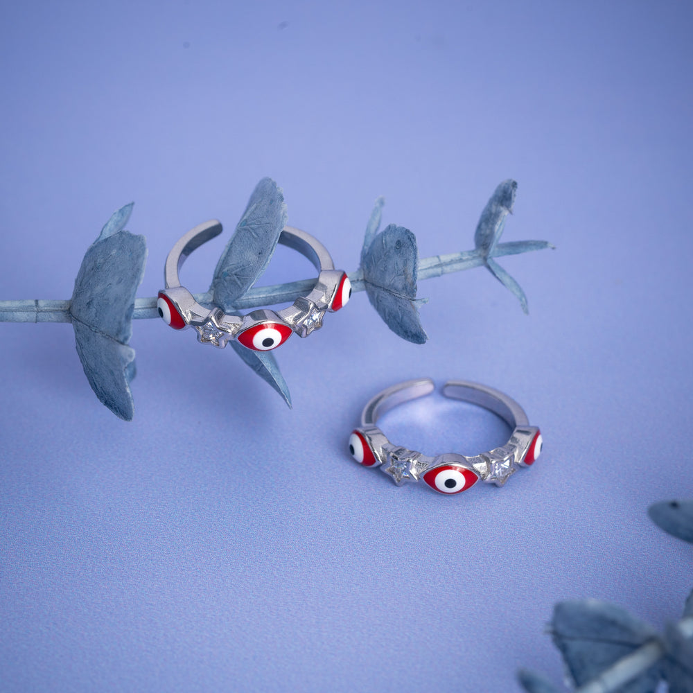 Fancy Heart-Shaped Evil Eye Toe Ring in Silver