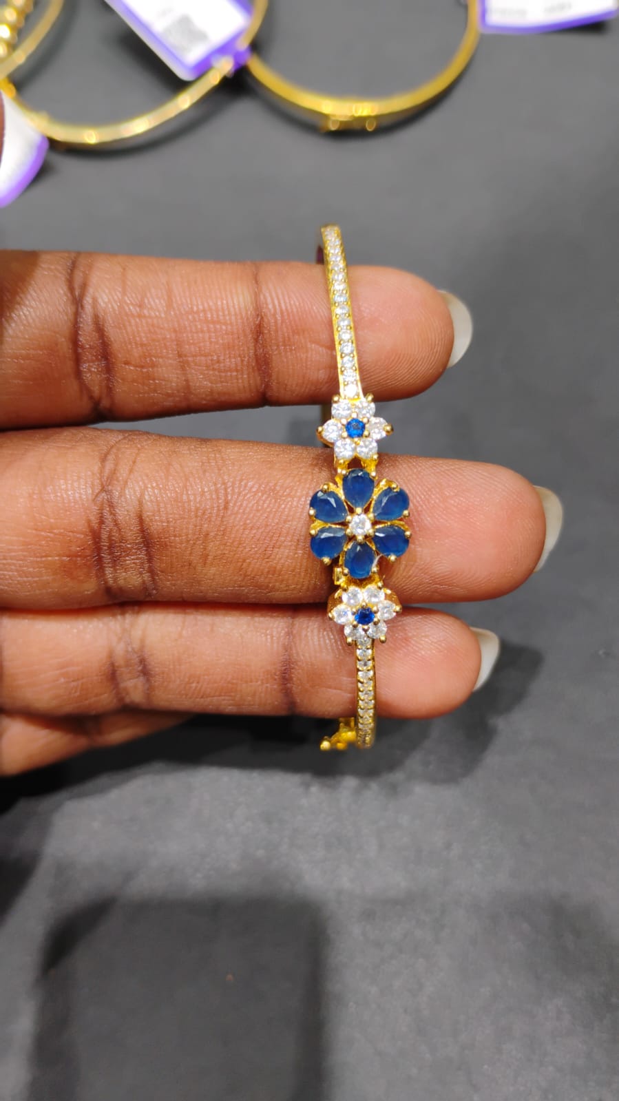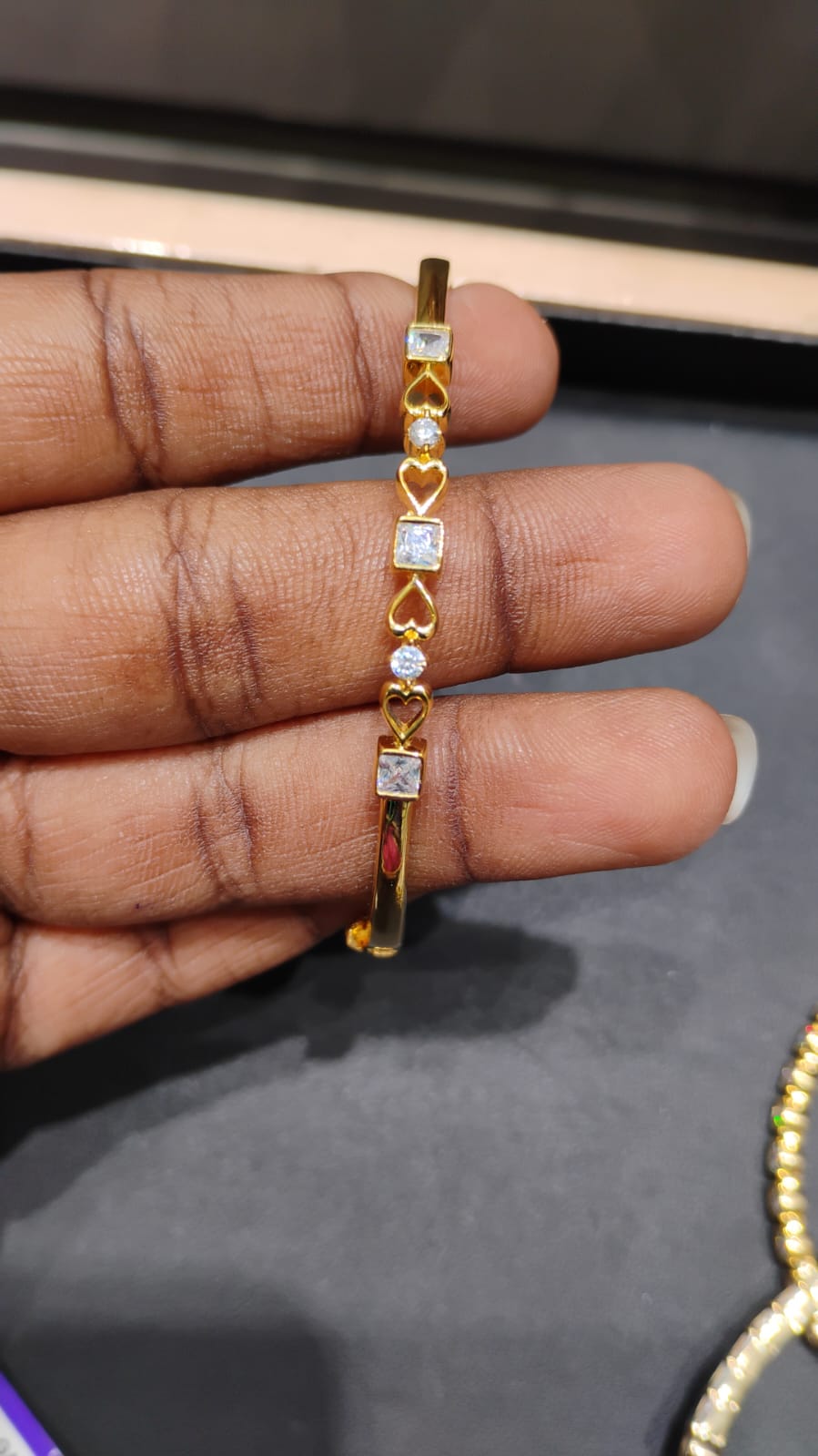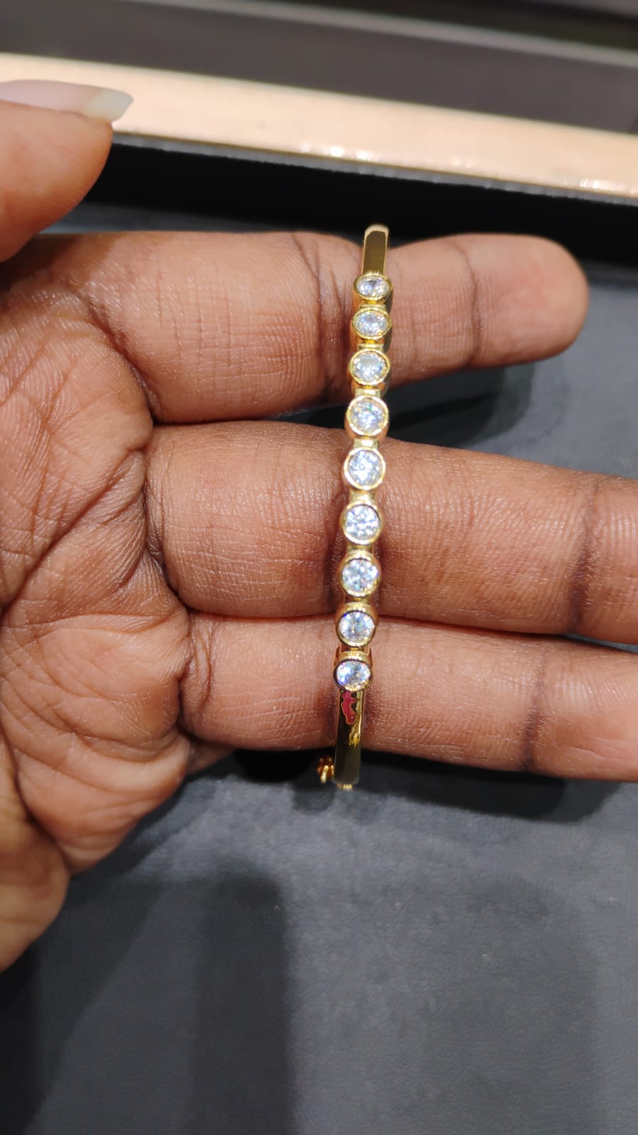 Gold Plated Kada with Bezel-Set Round Cubic Zirconia Stones