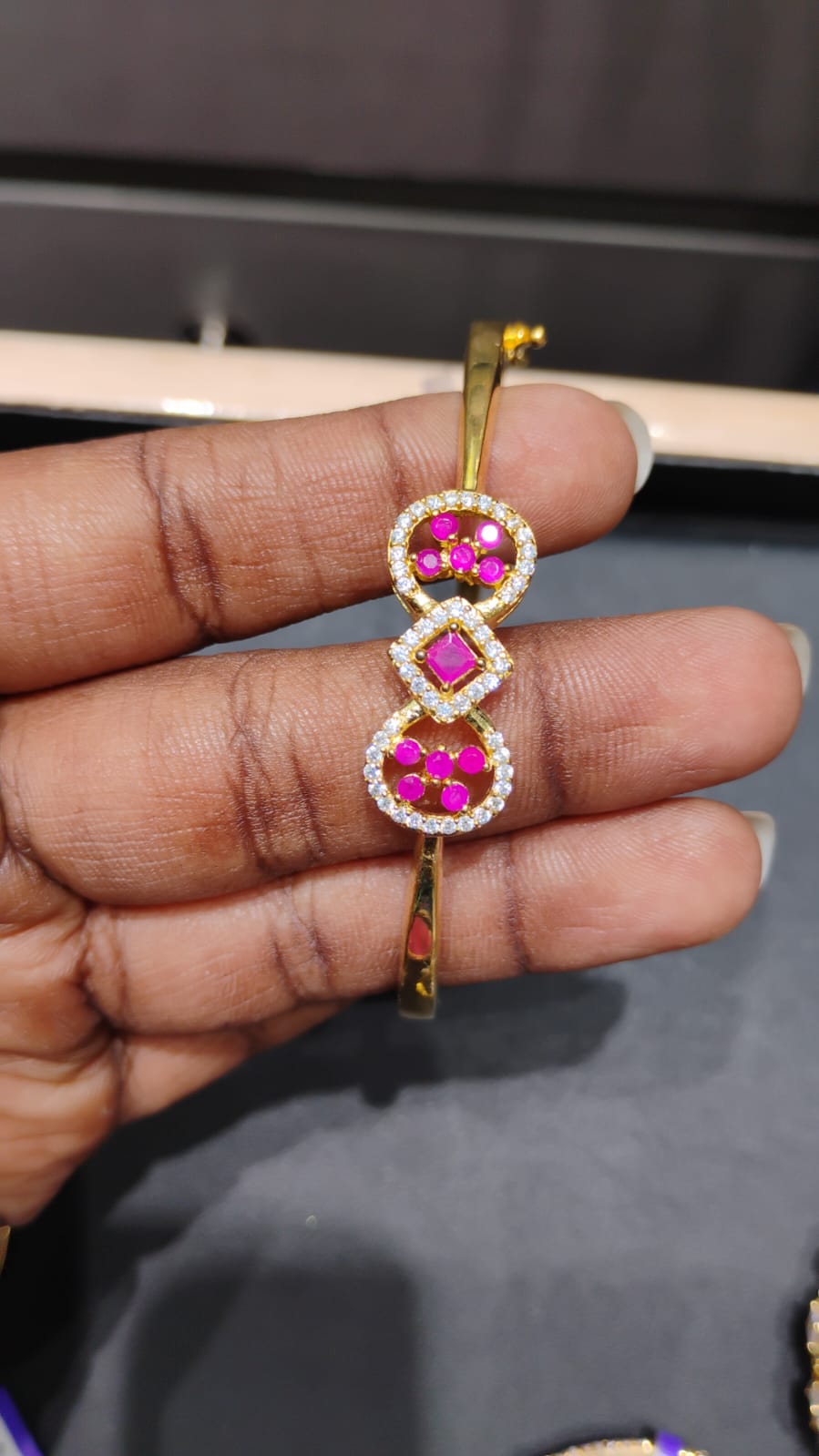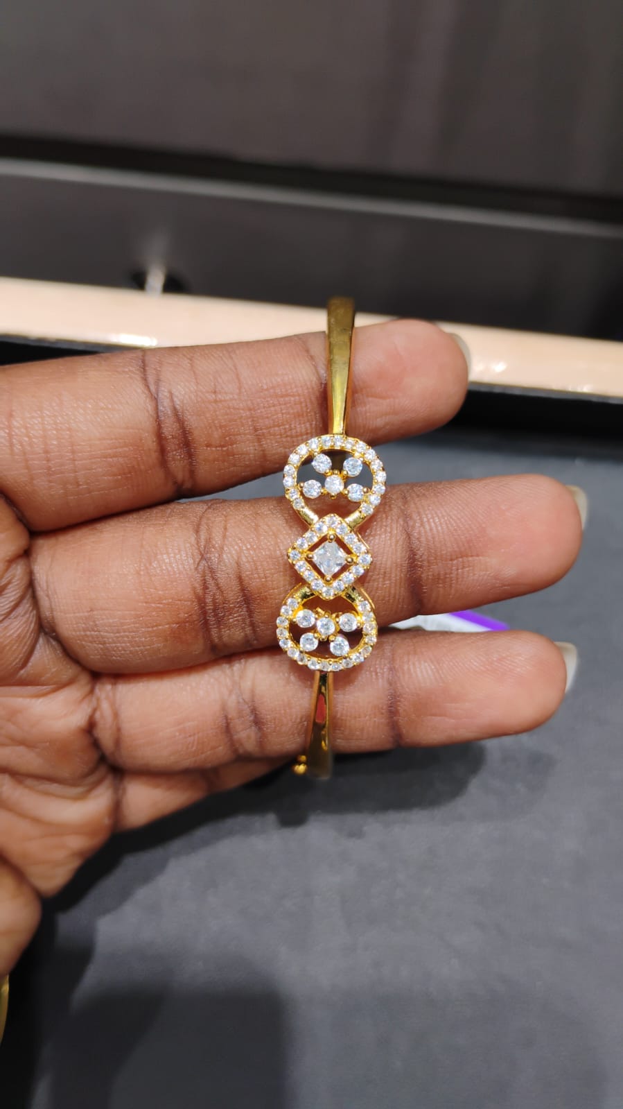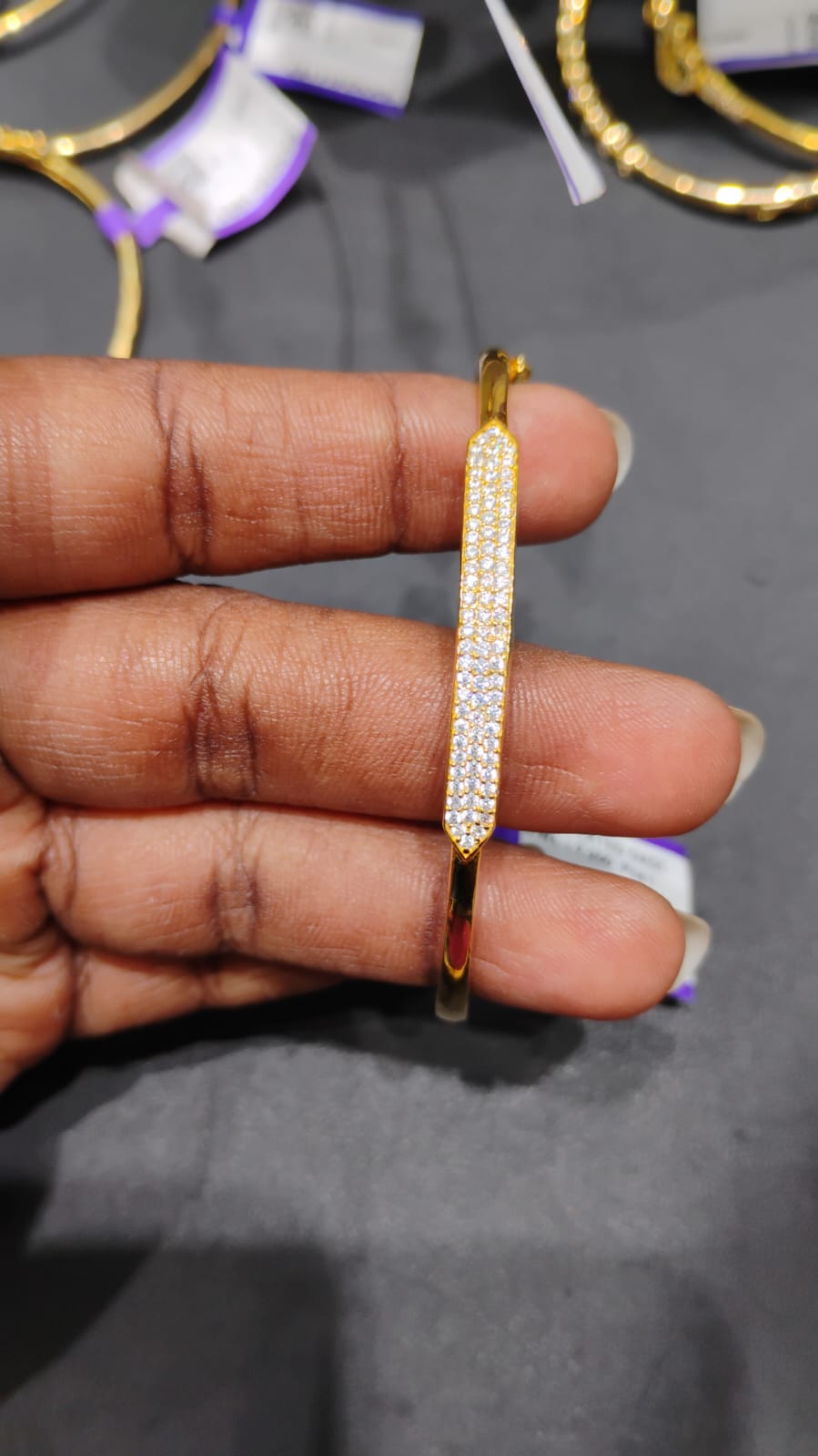 Gold Plated Kada with Pavé-Set Cubic Zirconia Stones