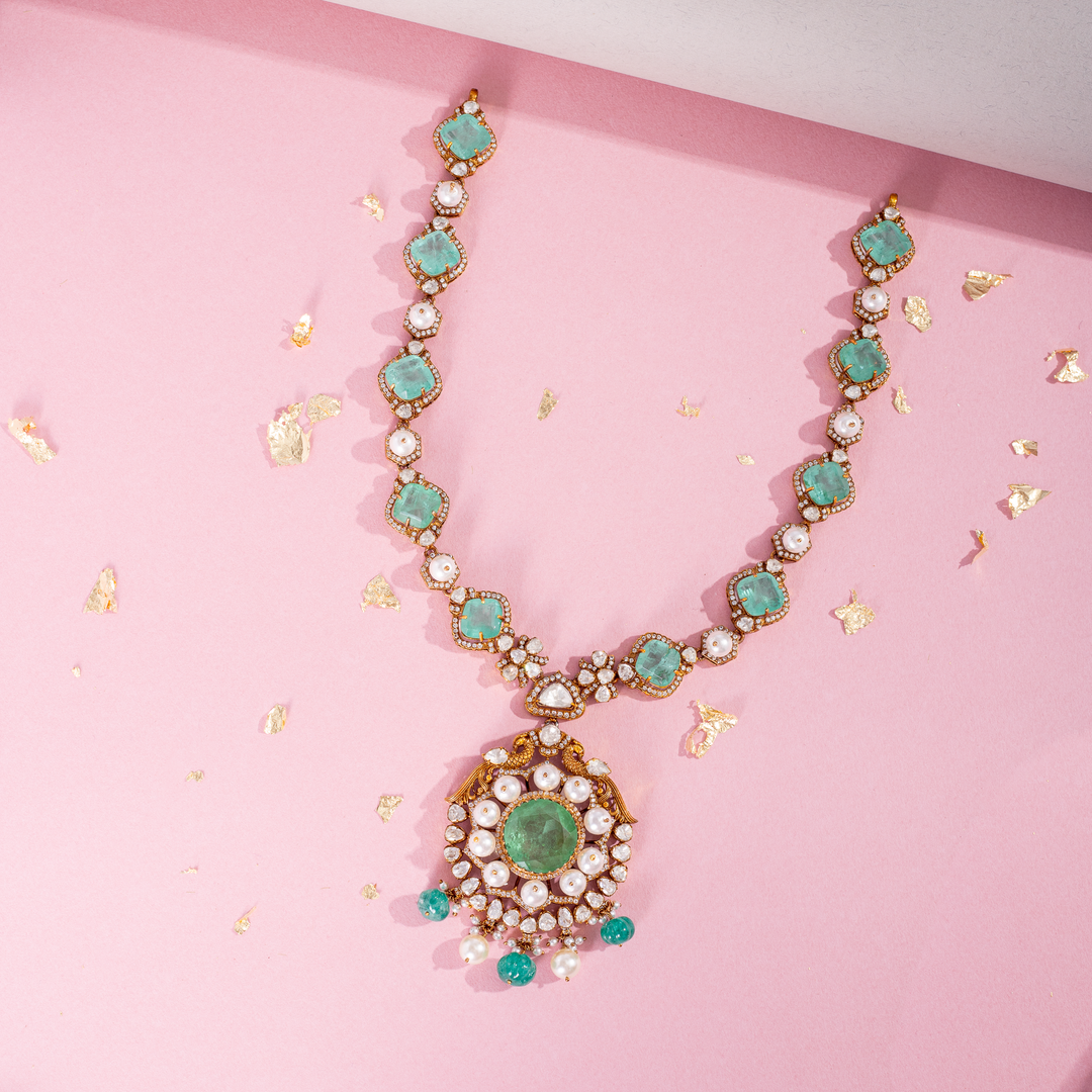 Gold-Plated Goddess Lakshmi Temple Necklace