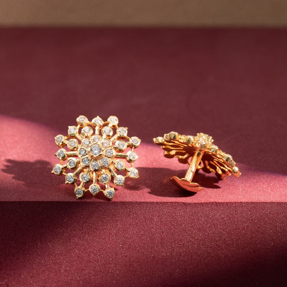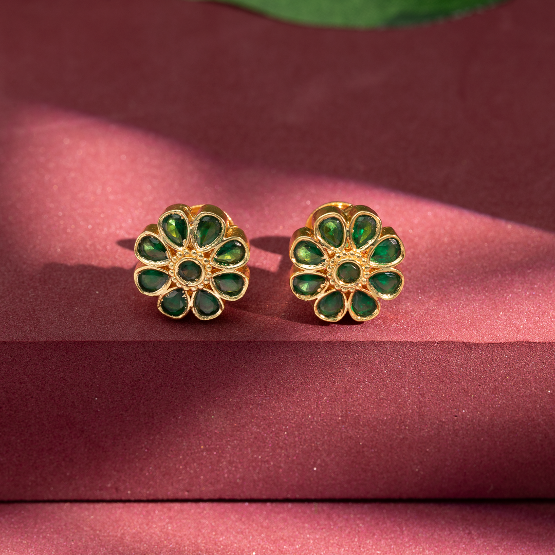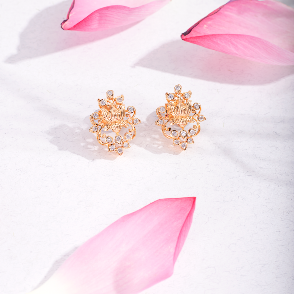 Gold-Plated Goddess Lakshmi Temple Stud Earrings