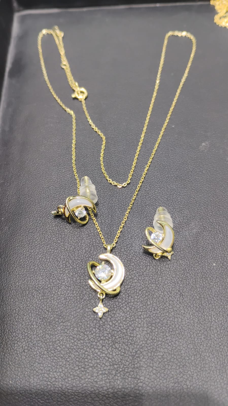 Gold-Plated Moon & Star Pendant Necklace with Studs
