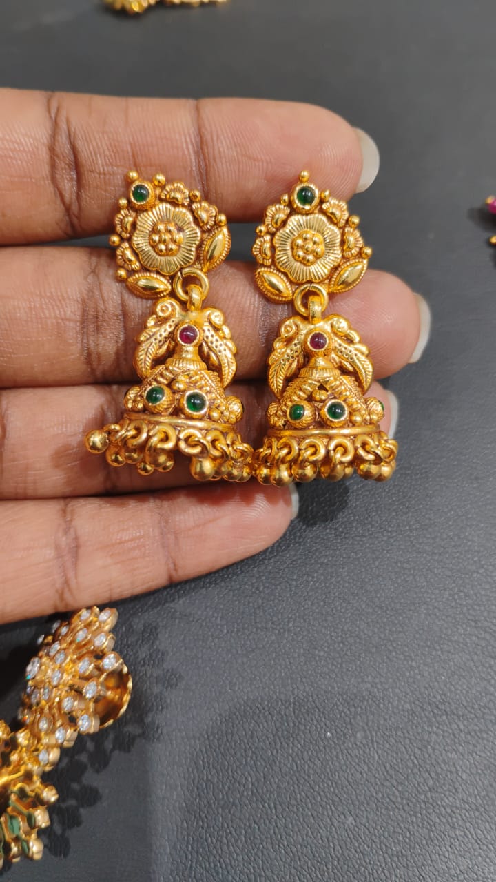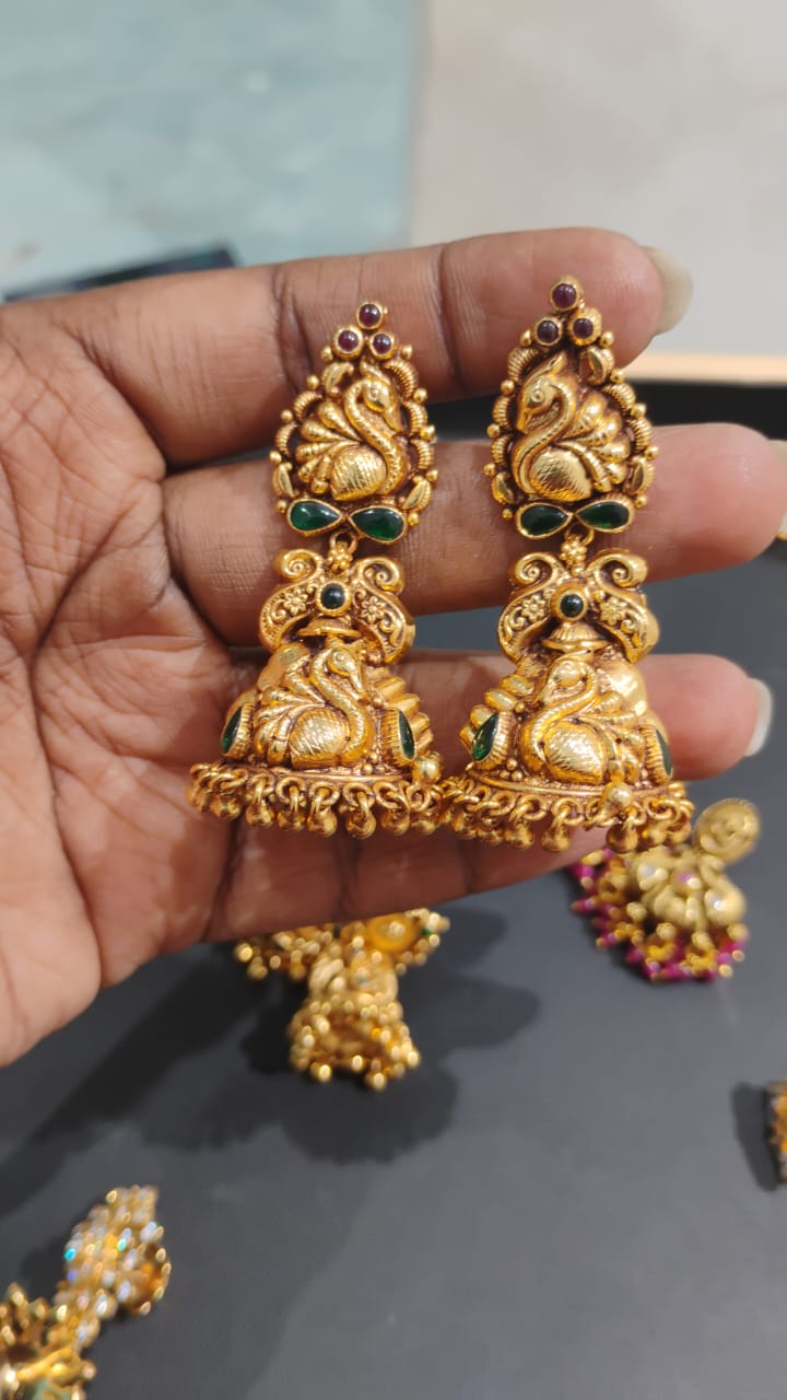 Gold-Plated Peacock Temple Jhumka Earrings