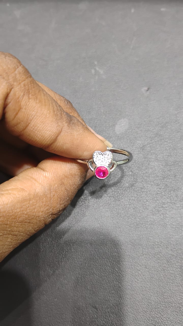 Heart-Shaped Silver Ring with Pink Stone