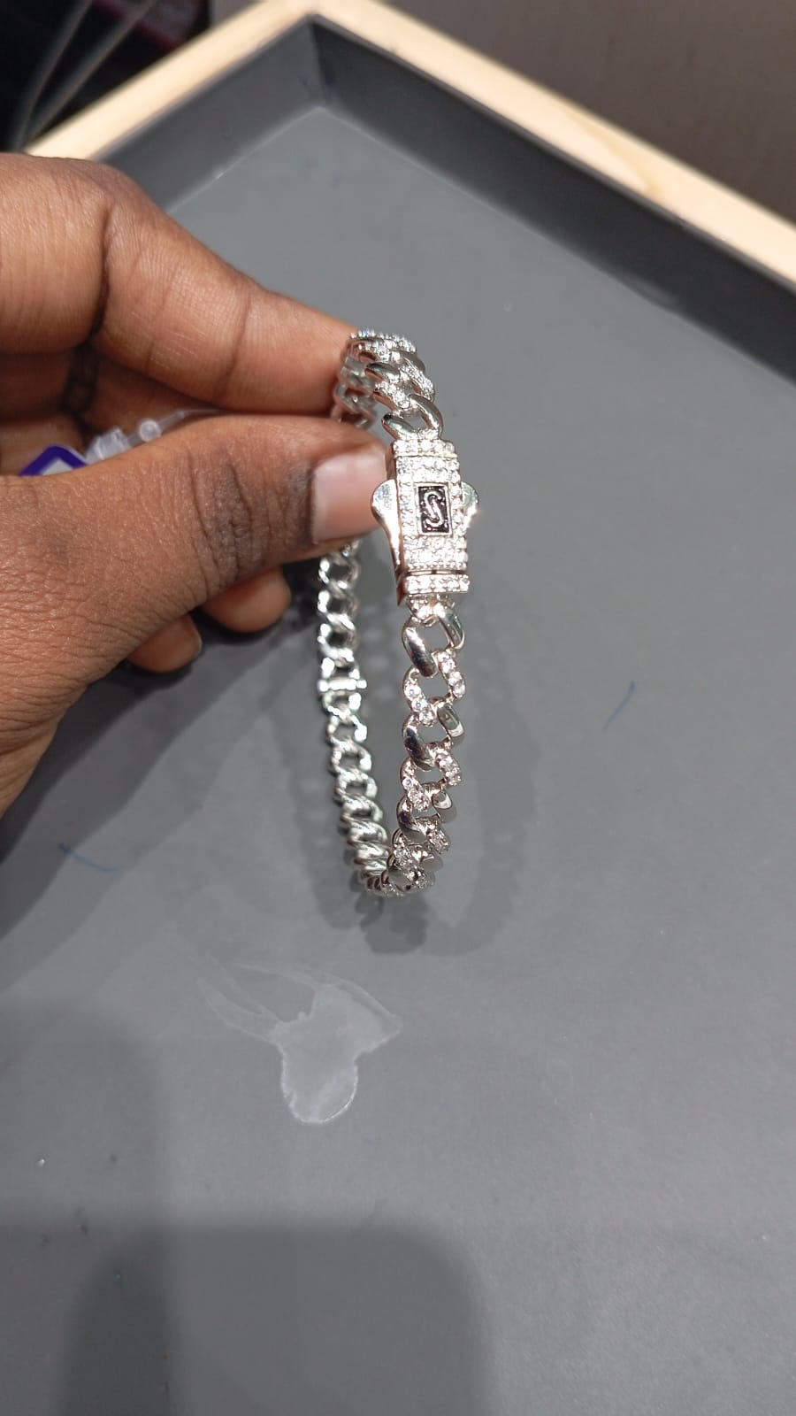 Iced Out Cuban Link Bracelet – Silver Kada with Stones