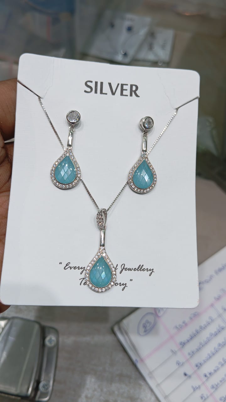 Larimar Pendant with Silver Chain & Matching Dangle Earrings