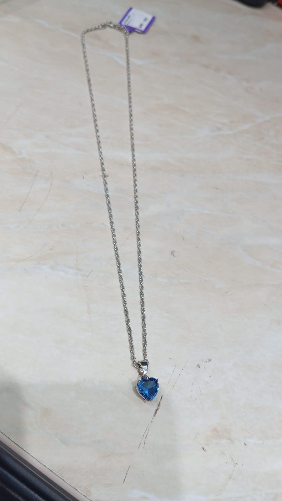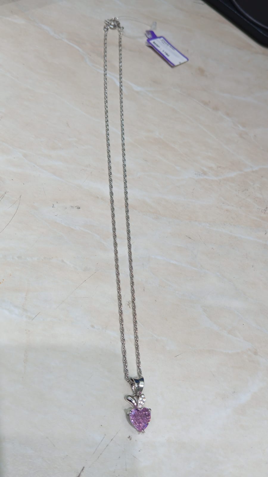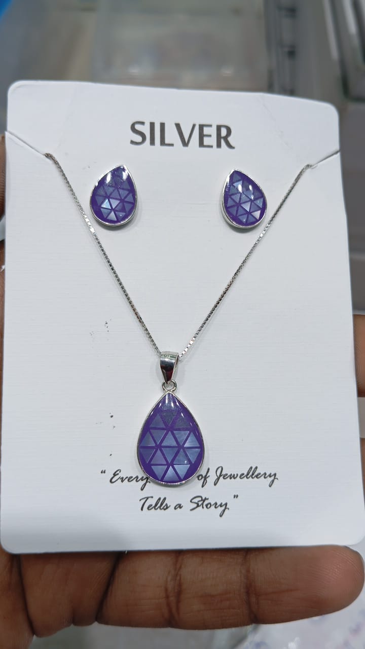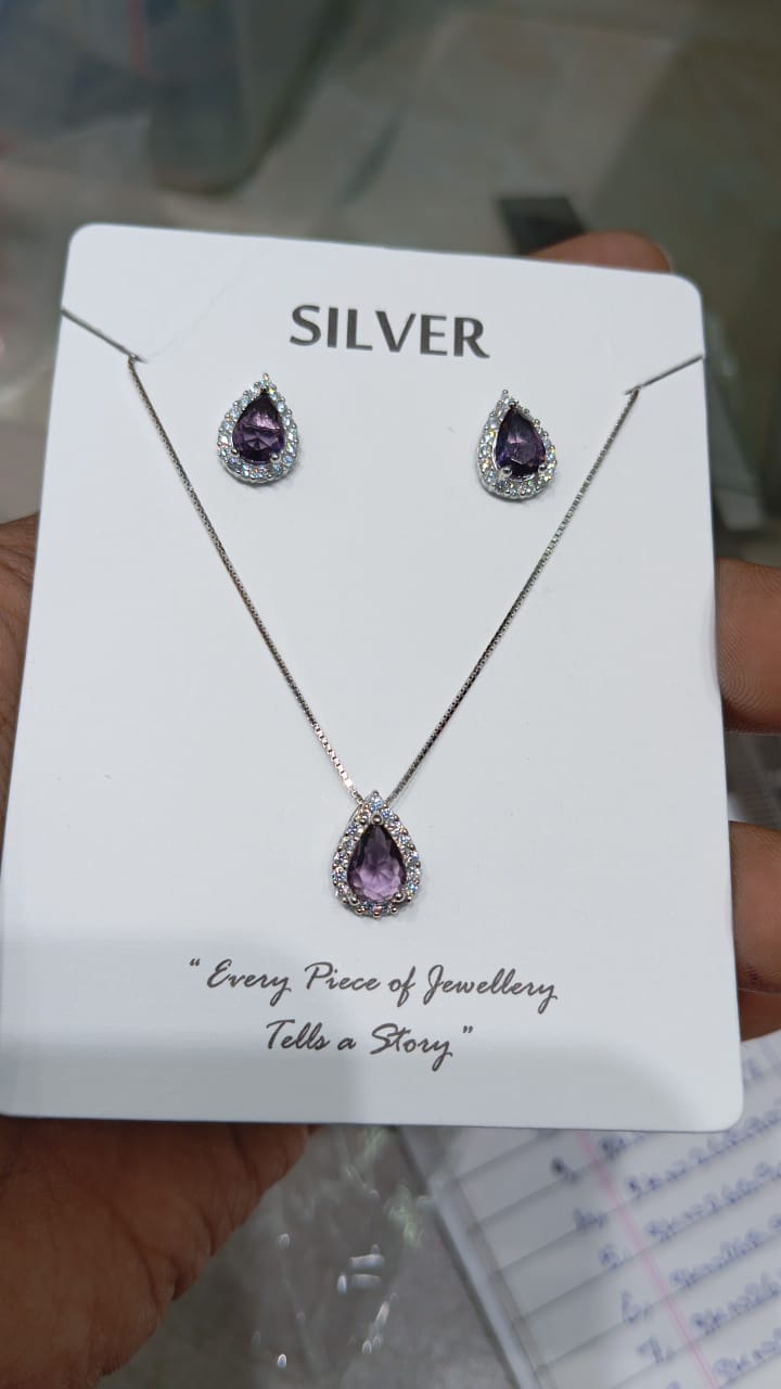 Purple Teardrop Pendant with Silver Chain & Matching Earrings
