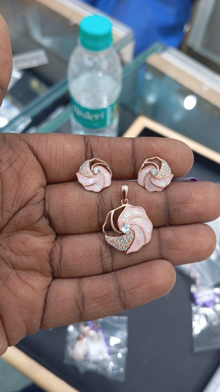 Rose Gold Plated Floral Pendant with Earrings