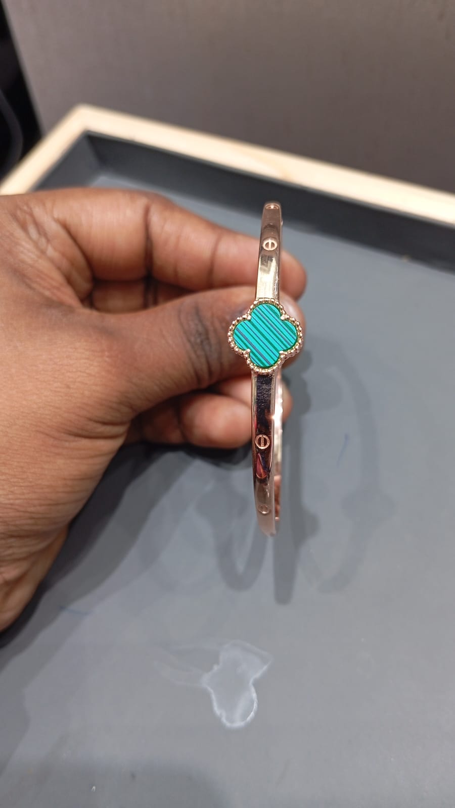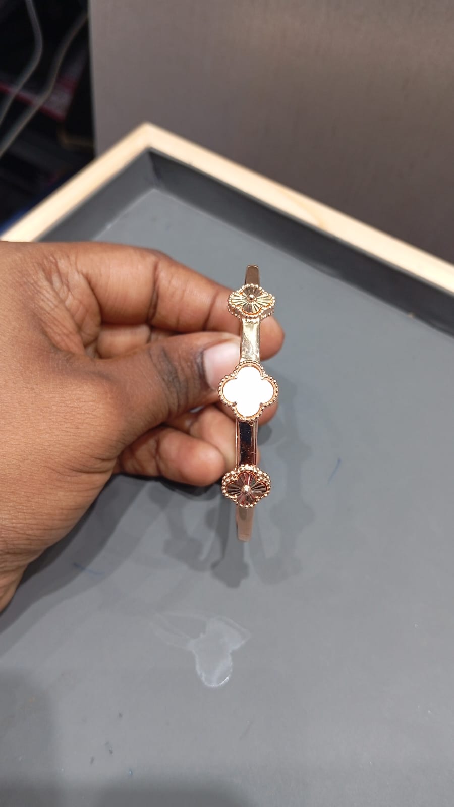 Rose Gold Plated Kada with Four-Leaf Clover Motif