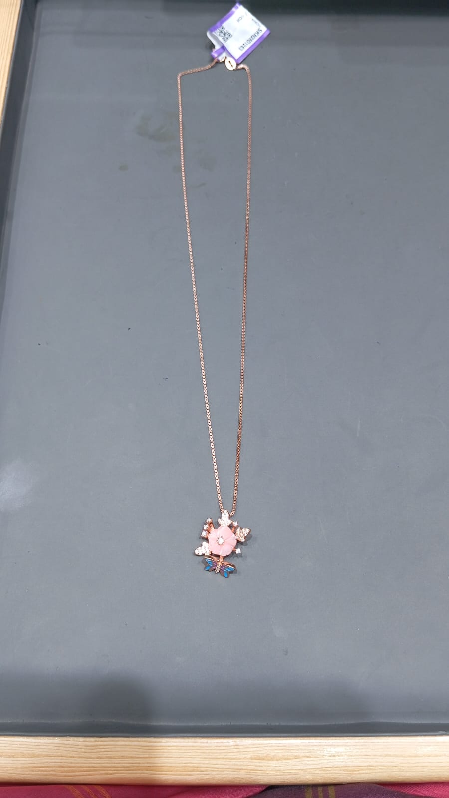 Rose Gold Plated Lotus Flower & Butterfly Pendant Chain