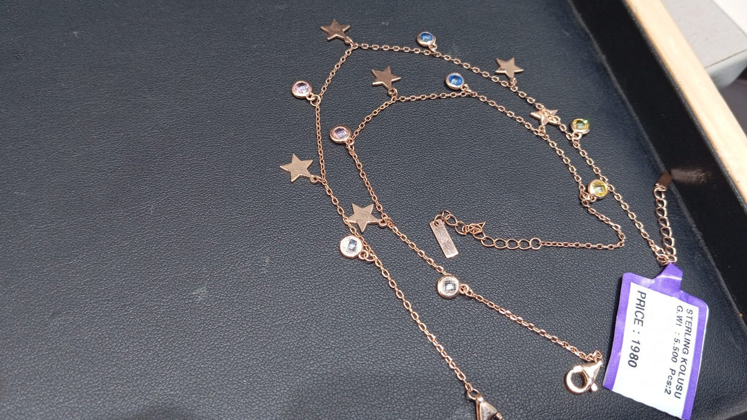 Rose Gold Plated Star & Multi-Colour Stone Anklet