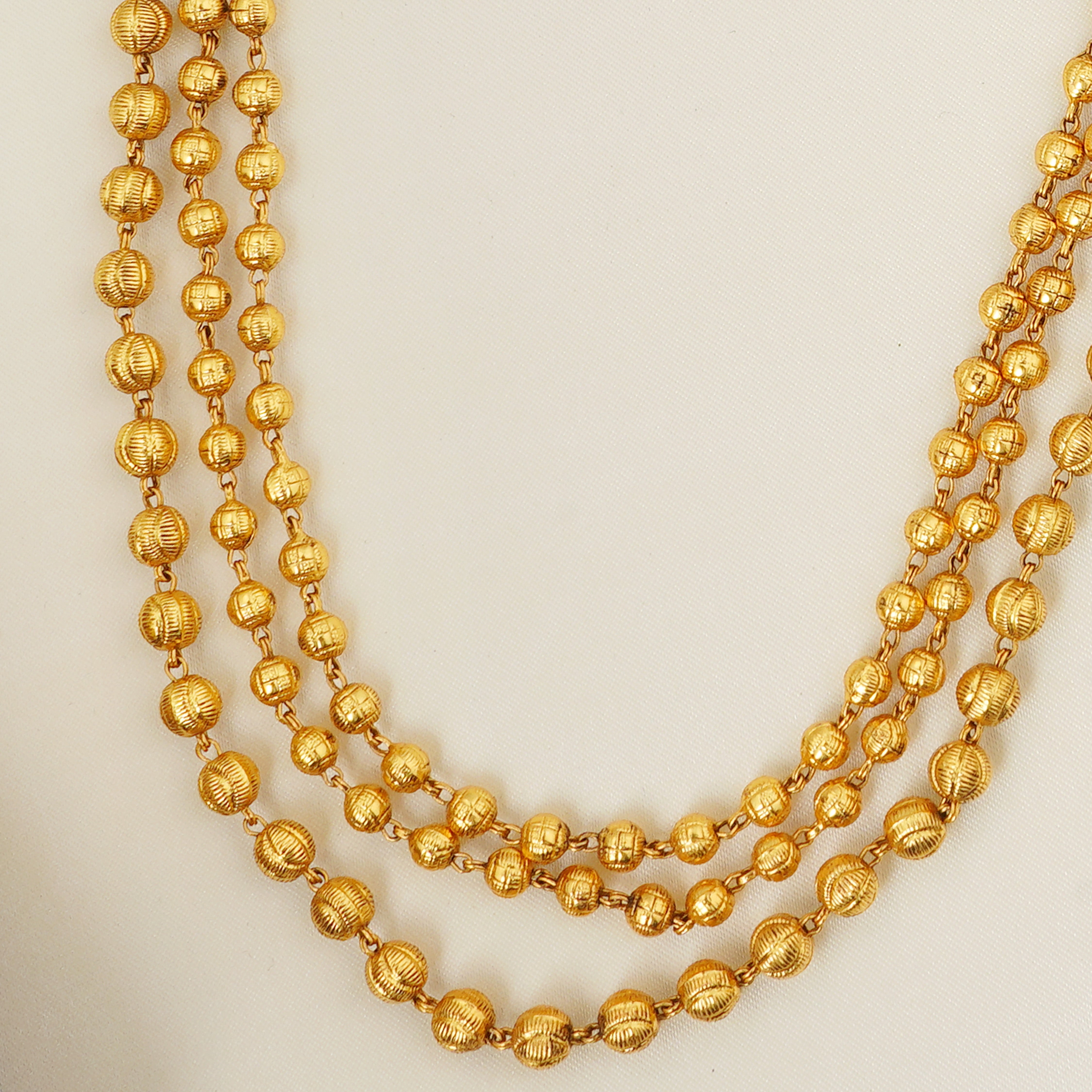 Design: Triple-layered temple-style haram with ruby stone accents