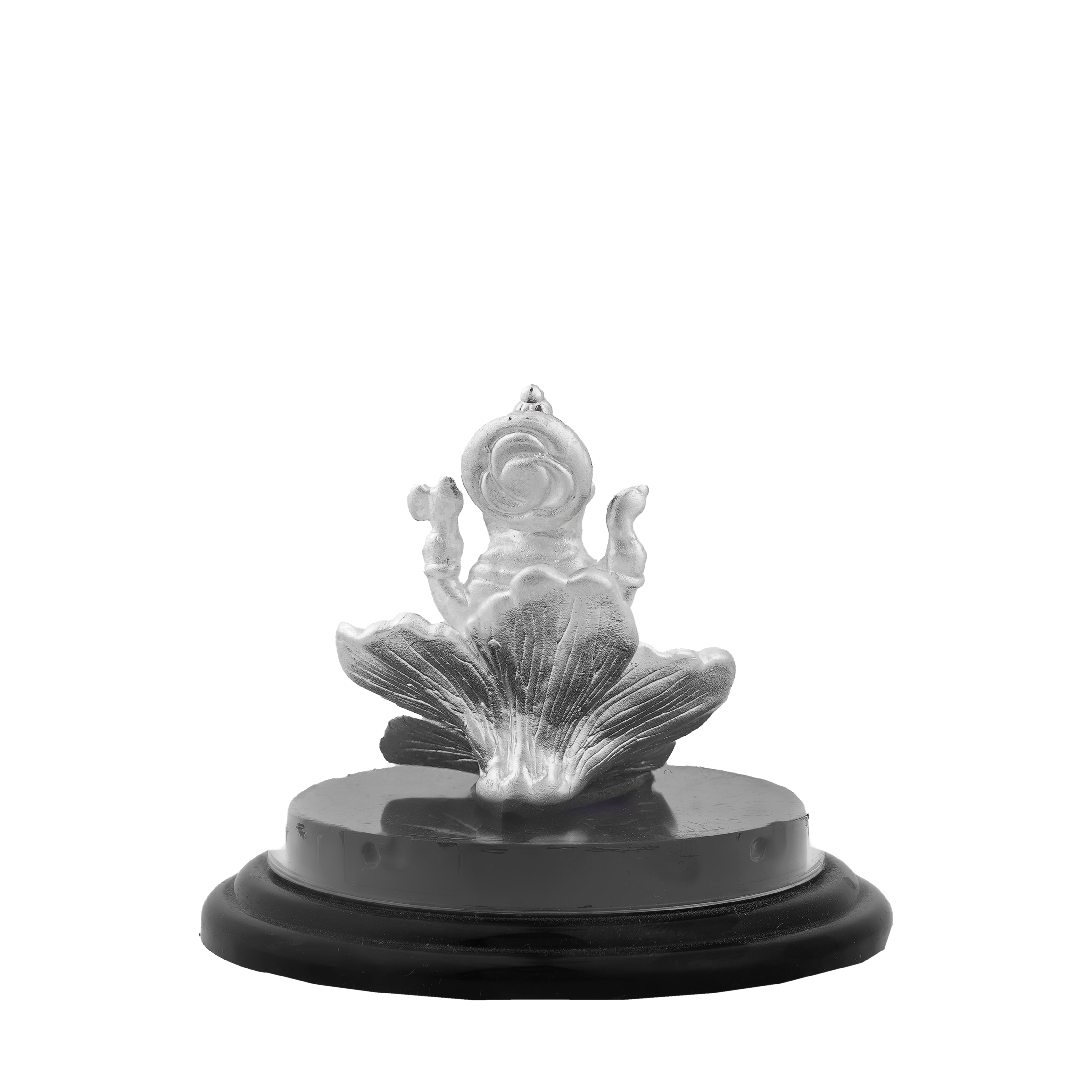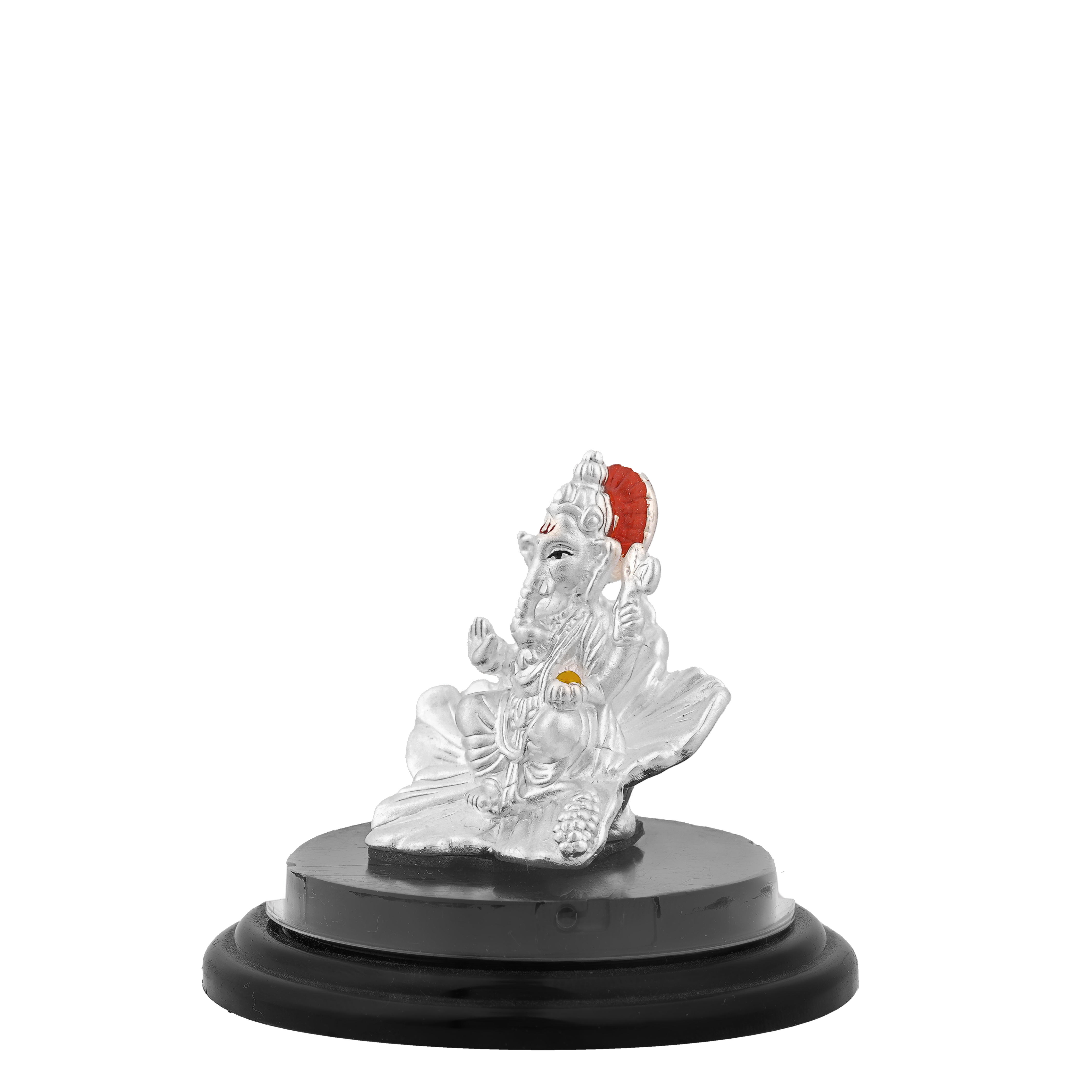 Design: Seated Ganesh with finely detailed ornaments and blessing posture.