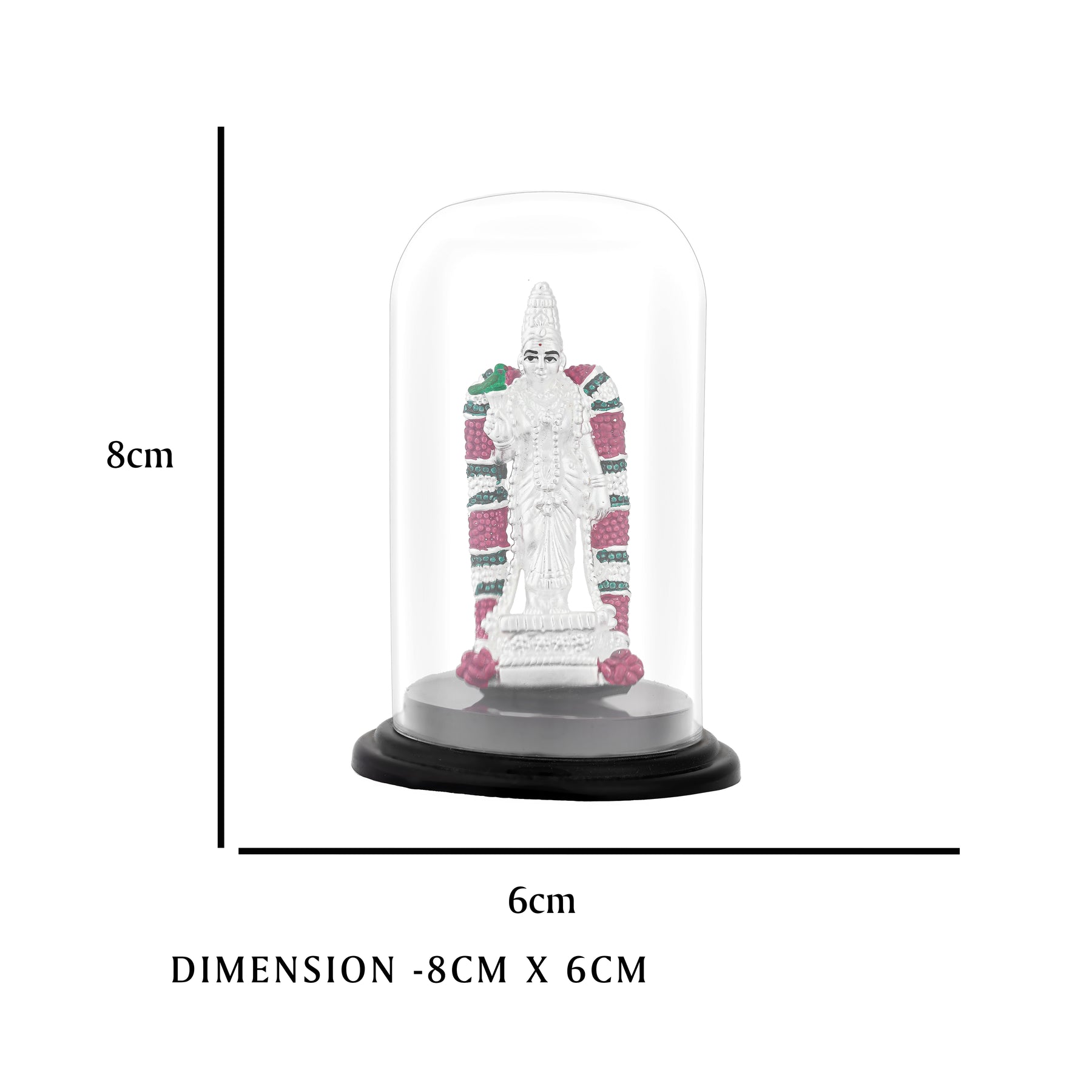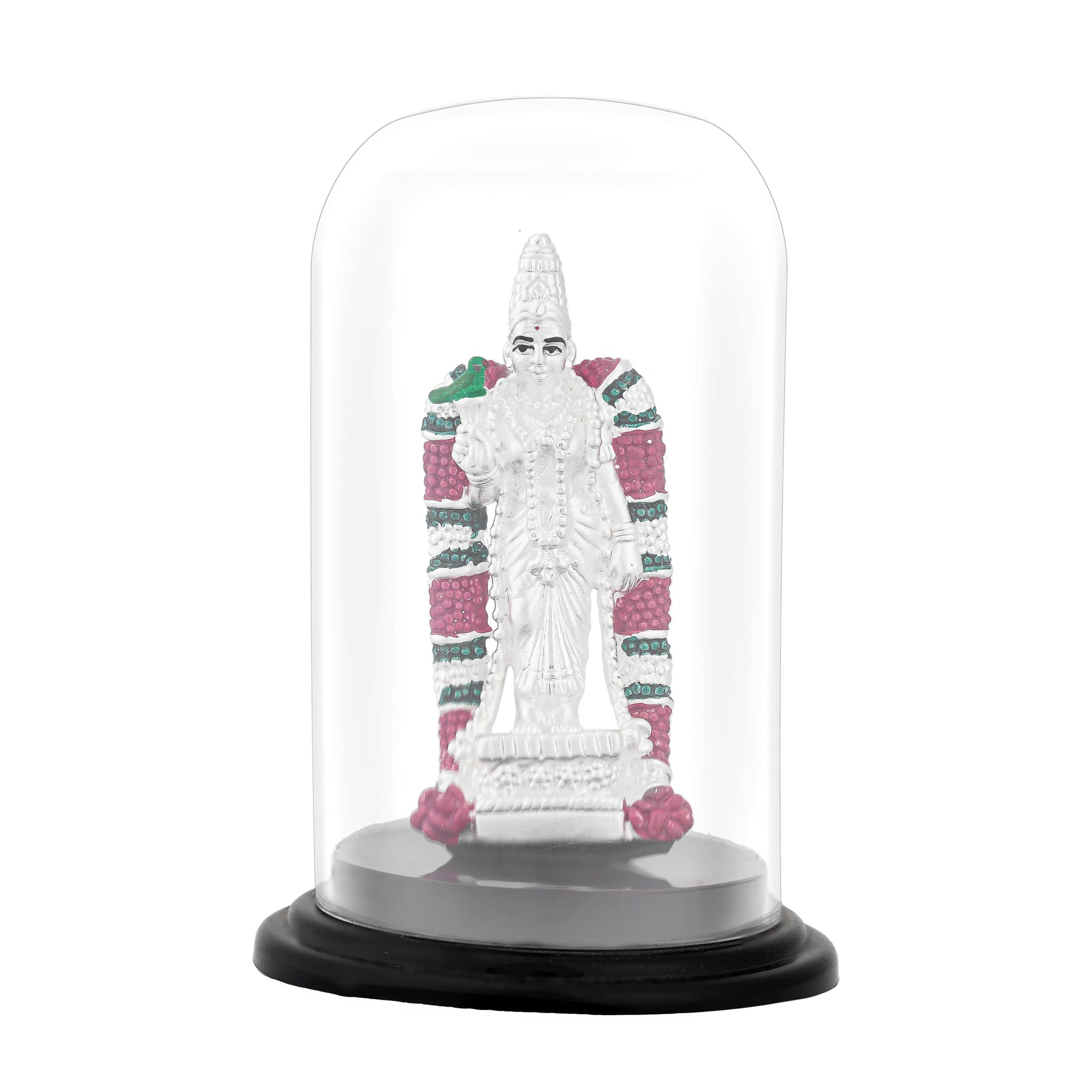 The idol making it the perfect size for home temples, office desks, and spiritual décor. Made from 999 pure silver, the piece is further enhanced with hand-painted enamel highlights in red, green, and pink, giving it a lifelike appearance.
