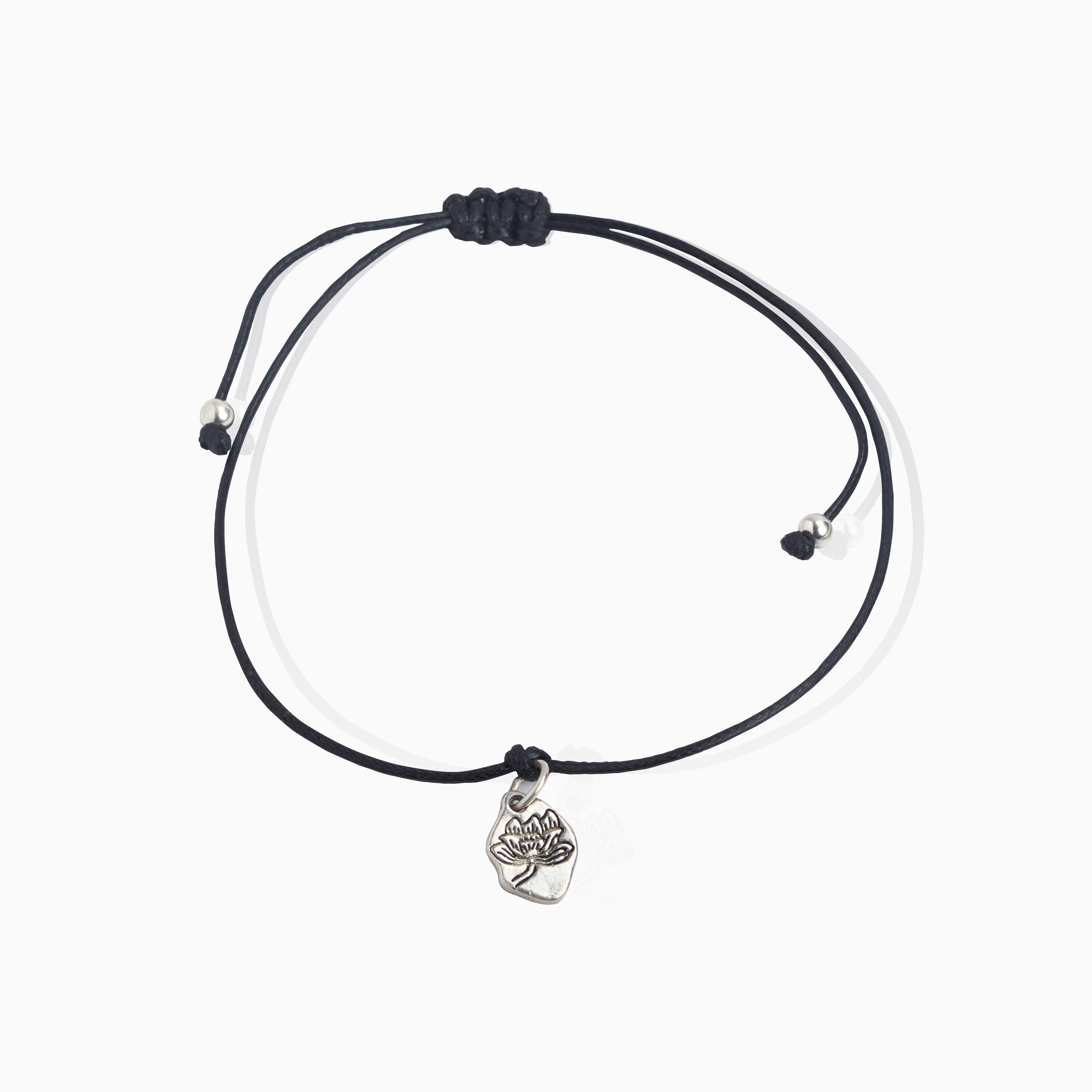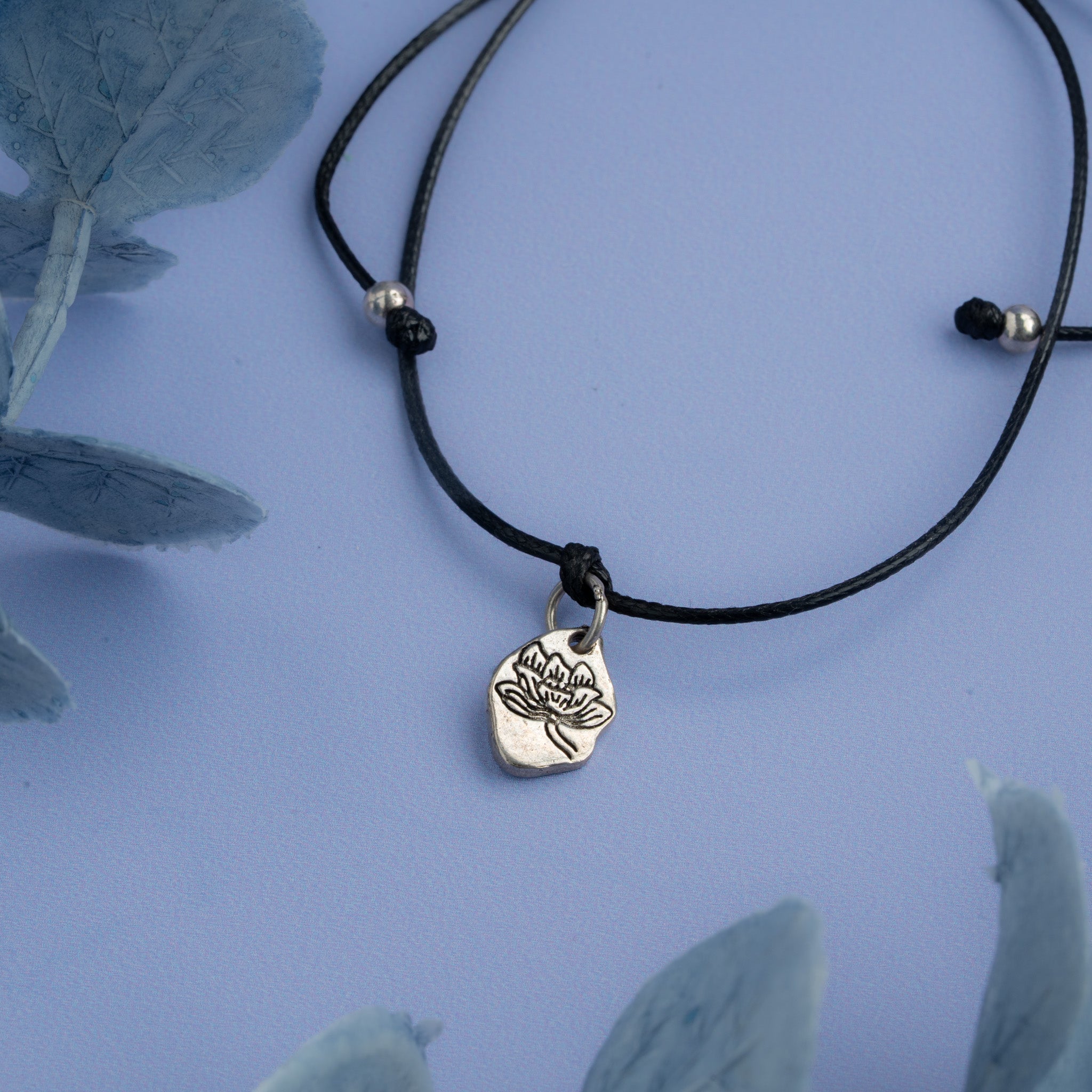 Black thread Adjustable Anklet with oxidised silver lotus charm