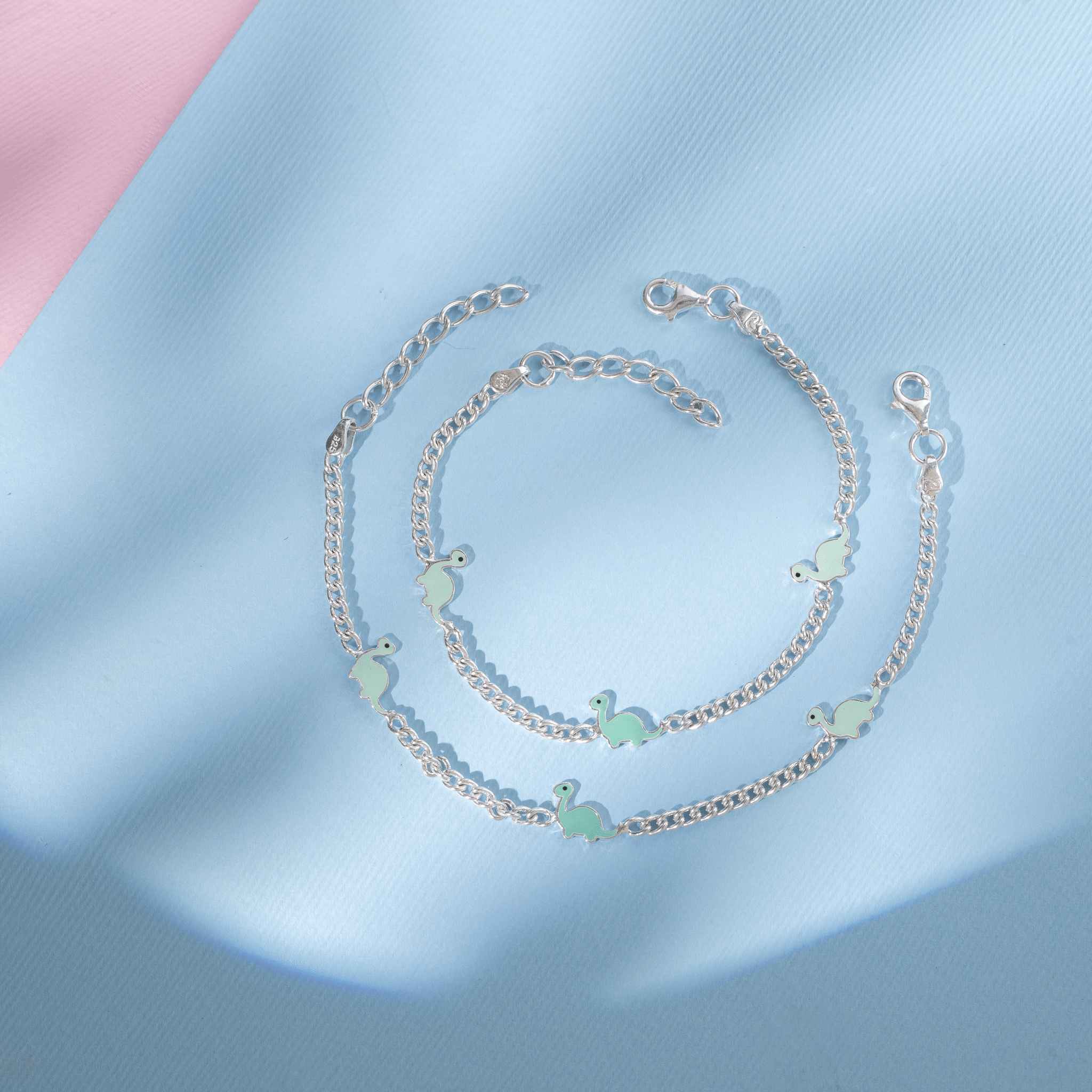Dinosaur enamel silver anklet for kids