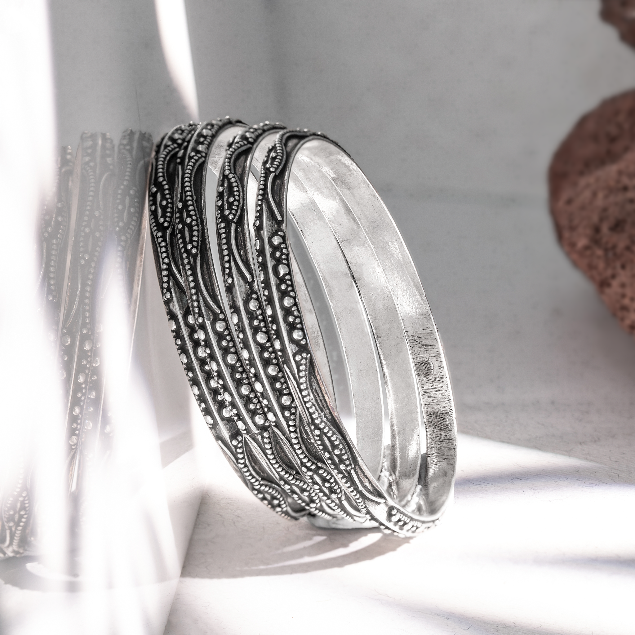 Design: Beaded and wavy patterned oxidized bangles