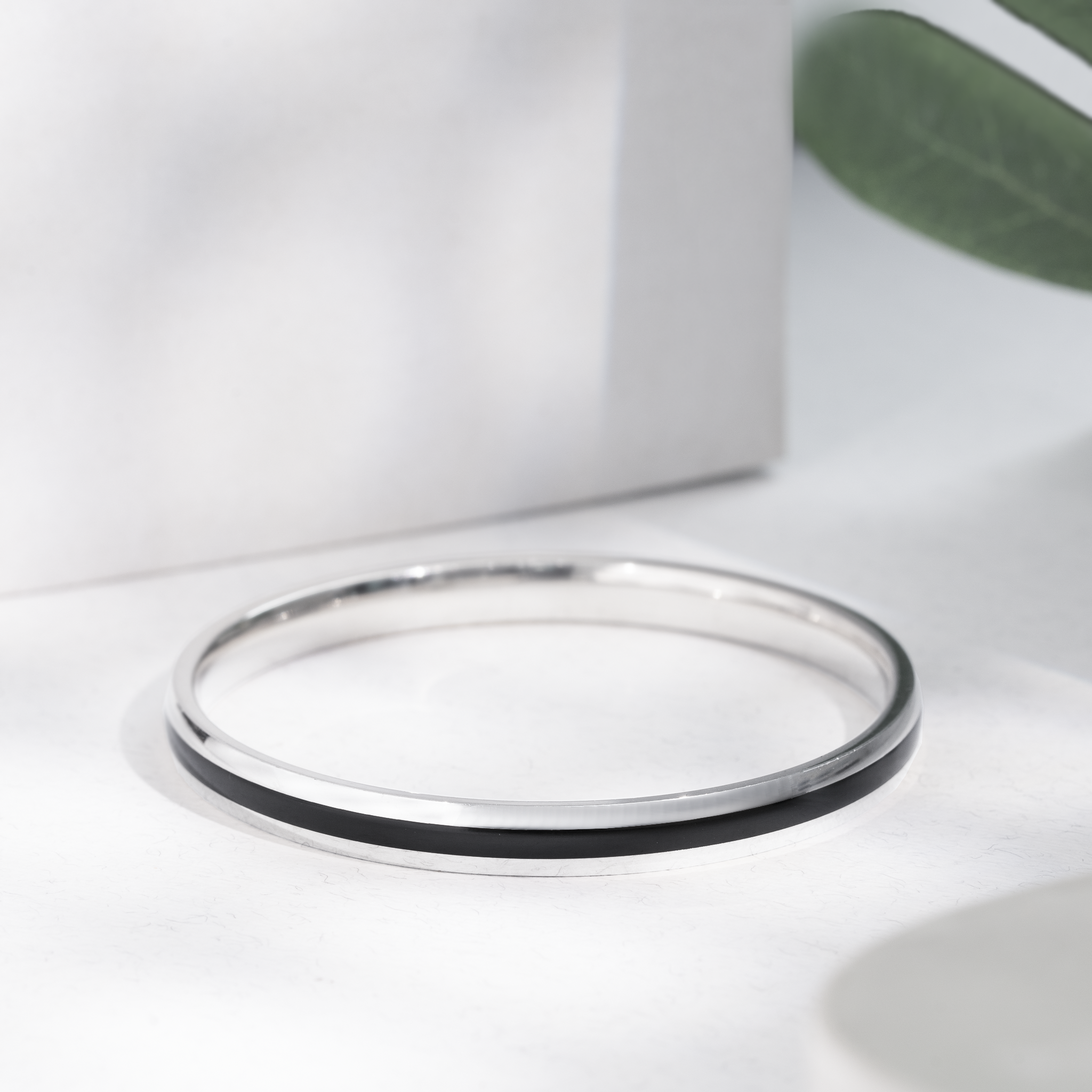 Design: Black enamel strip with polished silver body