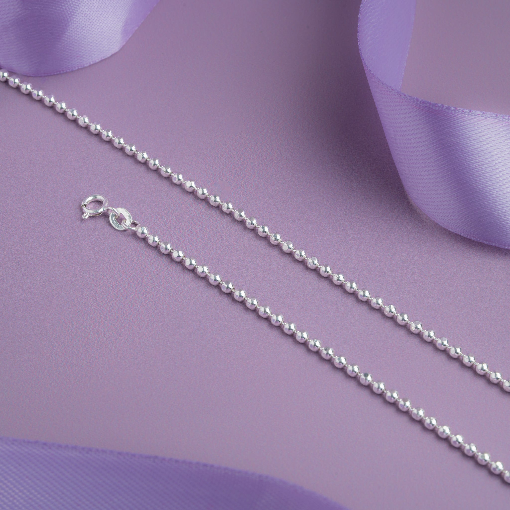 Minimalist silver ball anklet with uniform bead design
