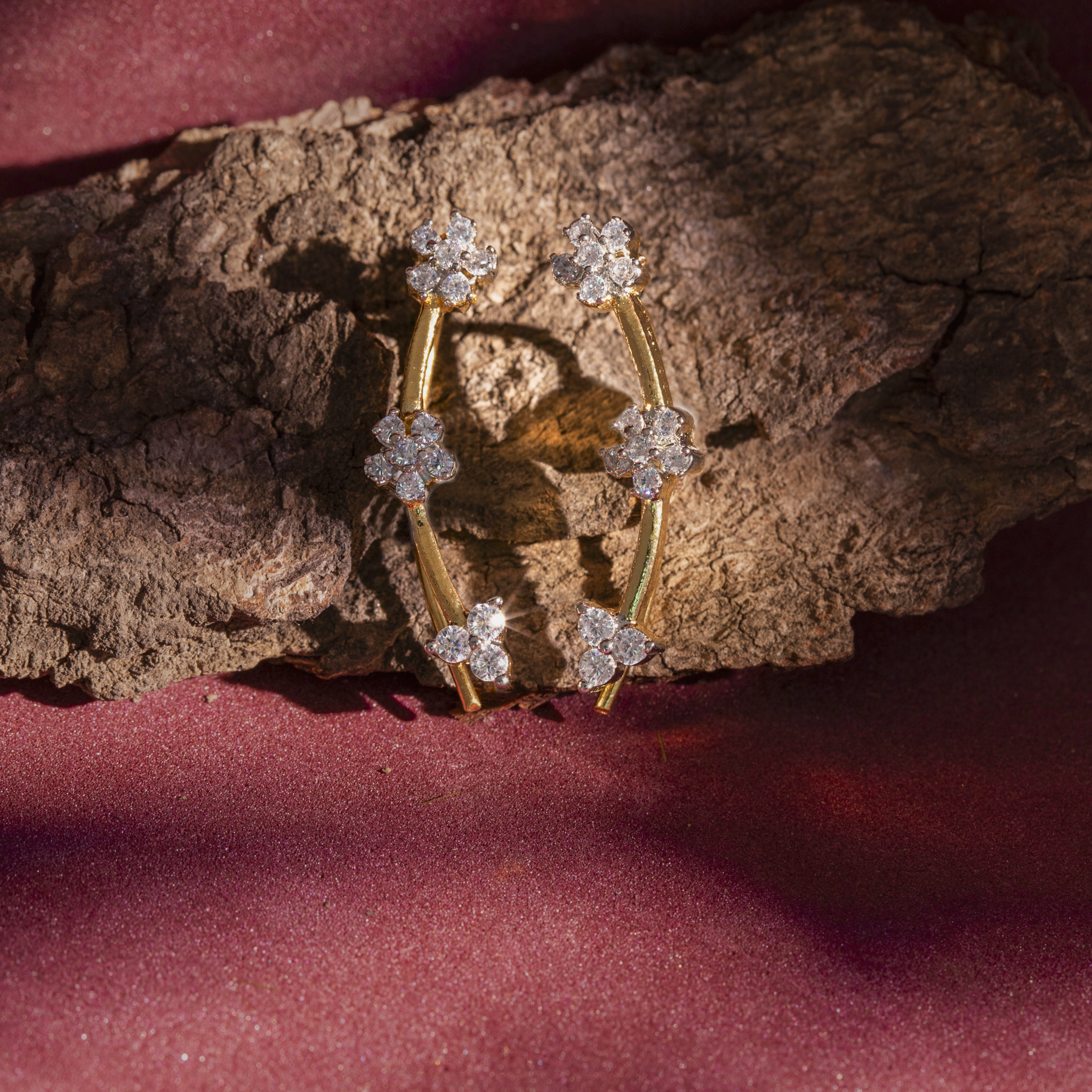 Design: Minimal floral ear cuff with sparkling CZ stones