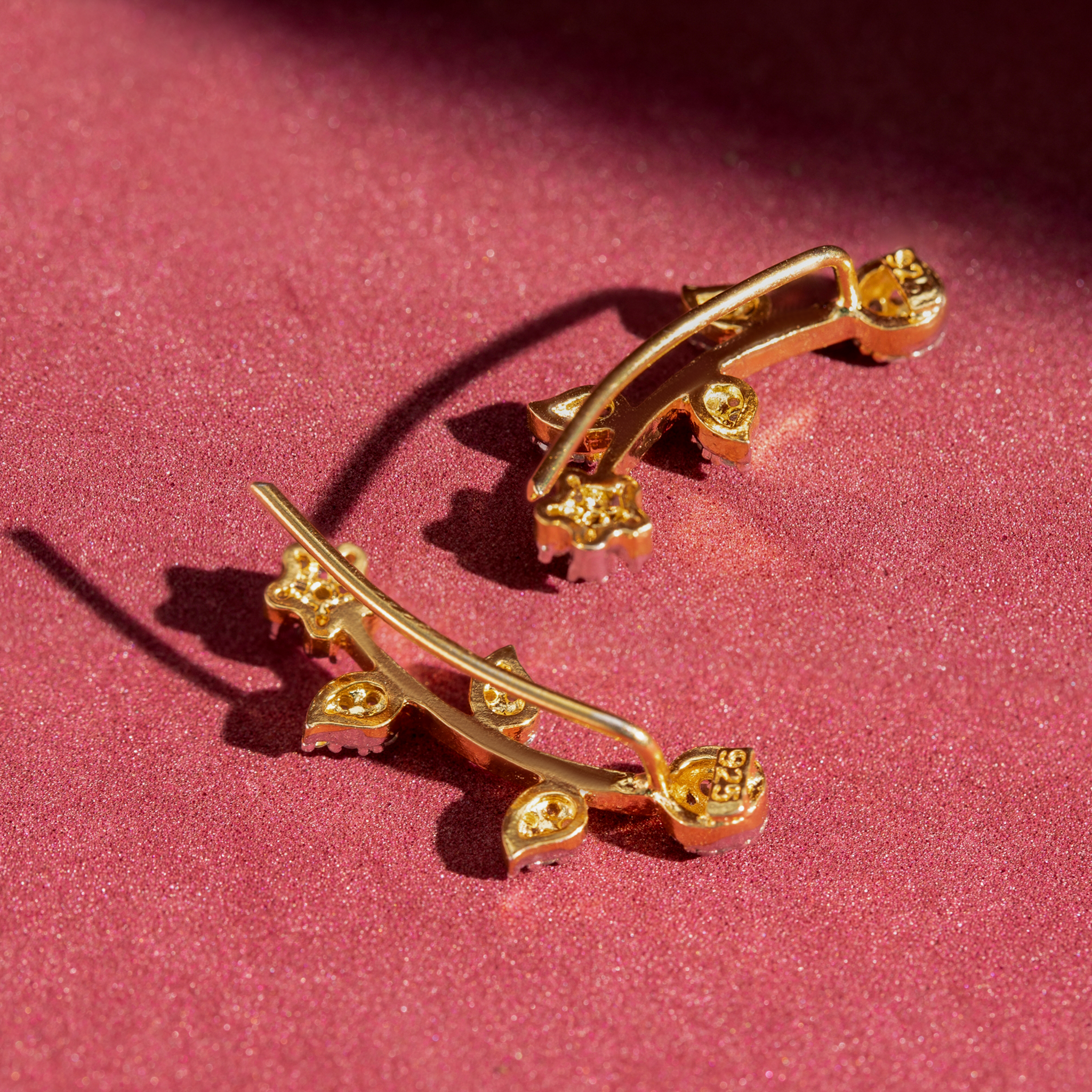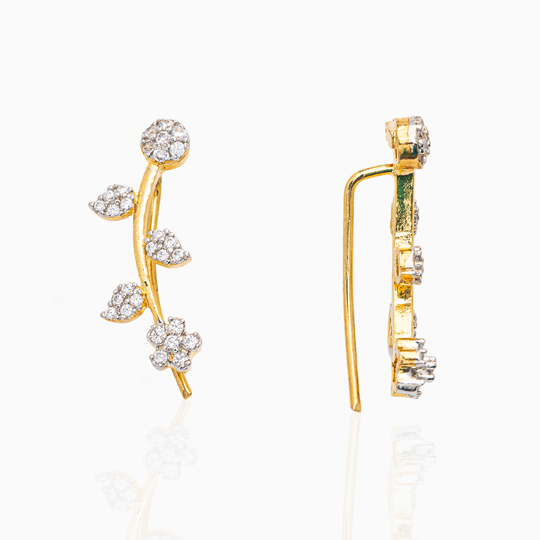 Design: Floral vine ear cuff featuring CZ-studded flowers and leaves