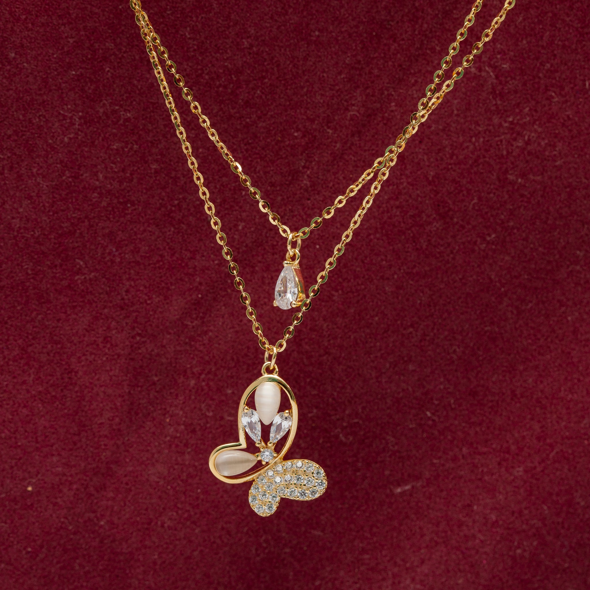 Design: Dual-layer chain with butterfly and teardrop pendants