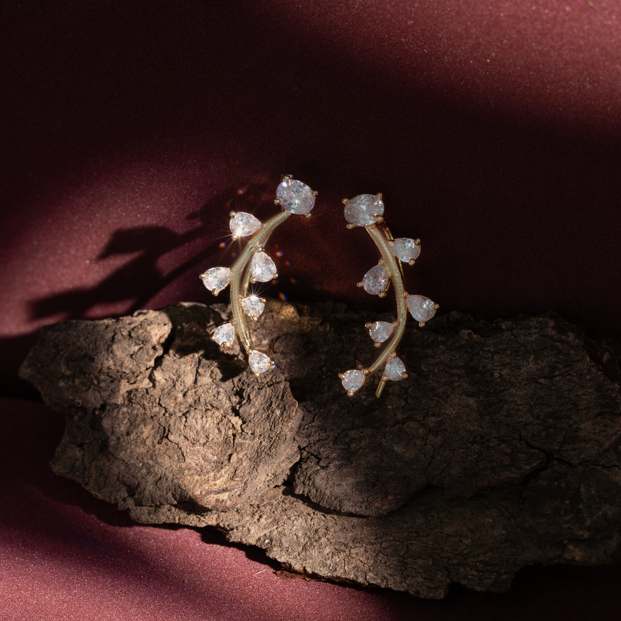 Design: Minimal leaf-inspired ear cuff with CZ stones