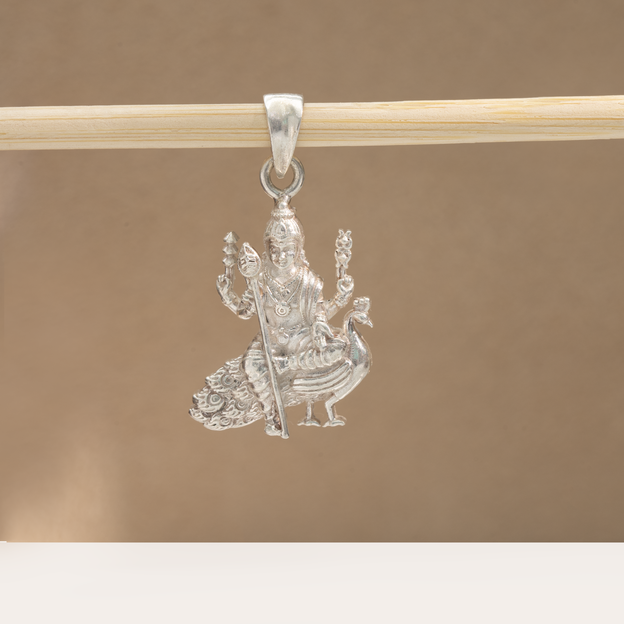 Design: Lord Murugan seated on peacock (Mayil Vahanam)
