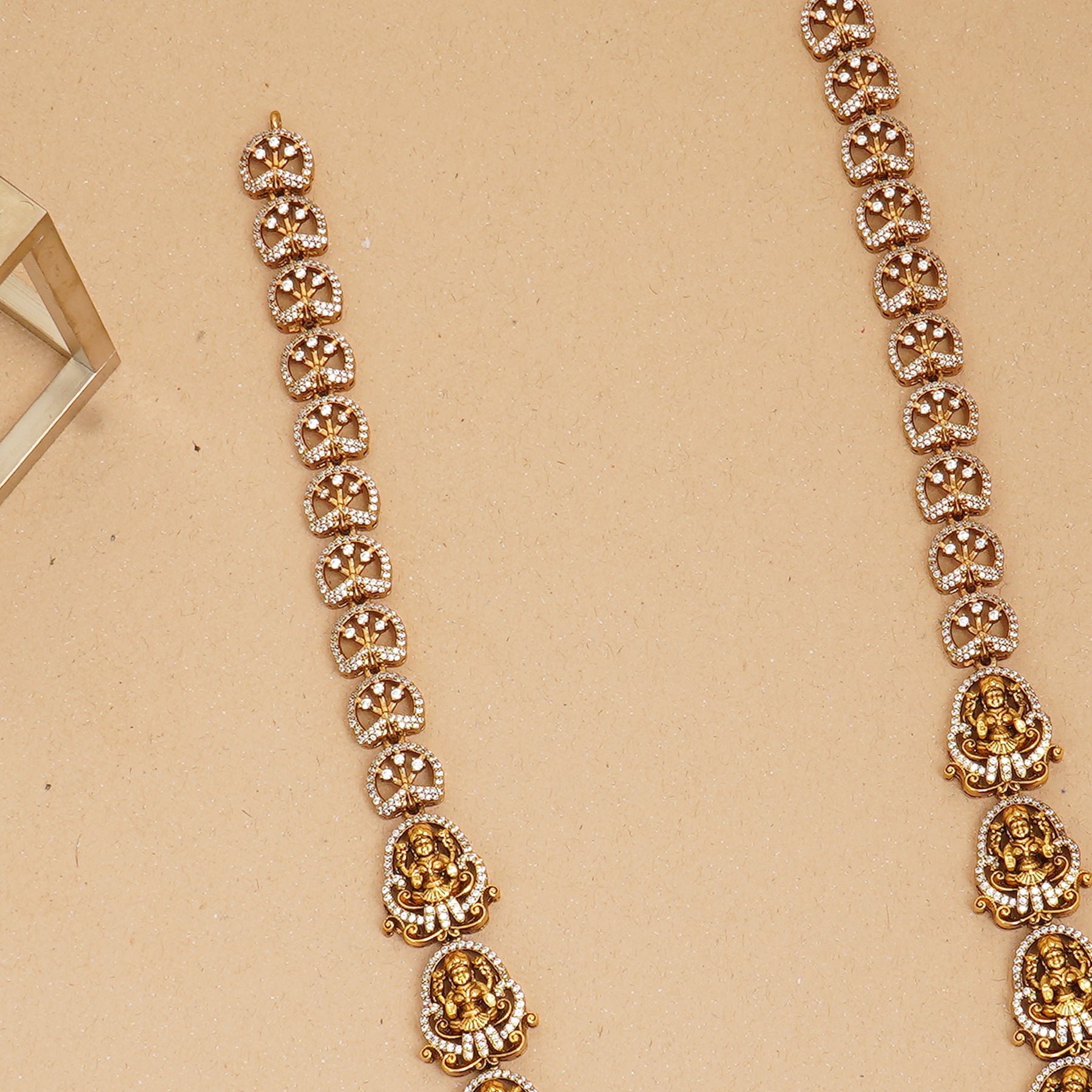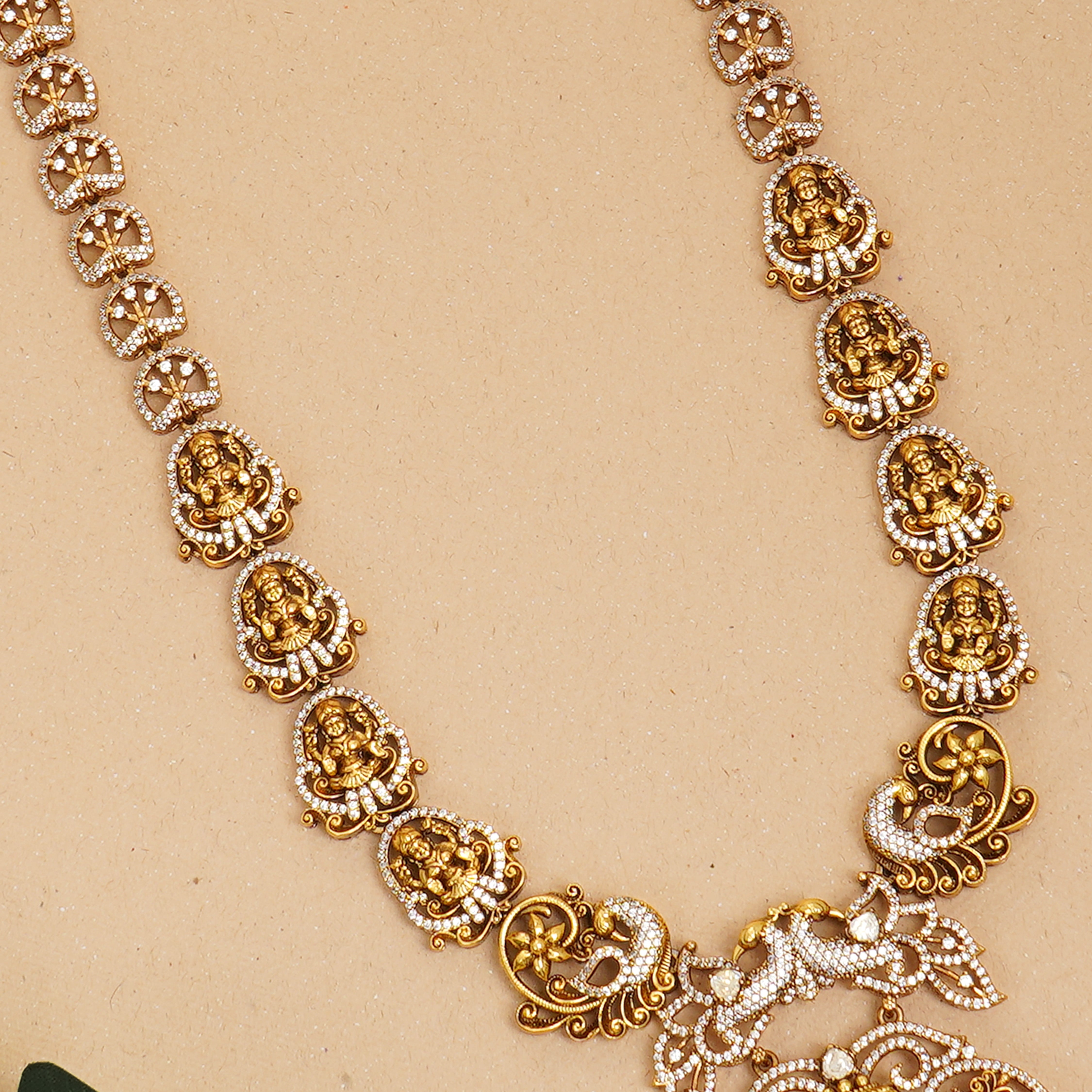 Design: Temple-style Lakshmi with peacock and moissanite accents