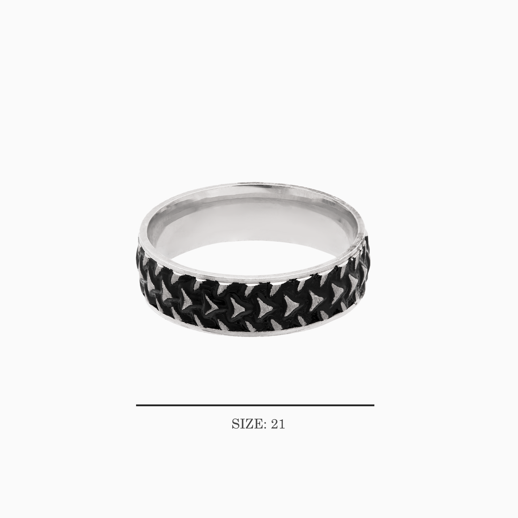 Made from 92.5 sterling silver, this Size 21 ring showcases a textured rope pattern with raised beaded motifs, giving it a distinctive and masculine appeal. The oxidized silver finish enhances the depth of the design, creating a vintage, handcrafted look that stands out effortlessly.