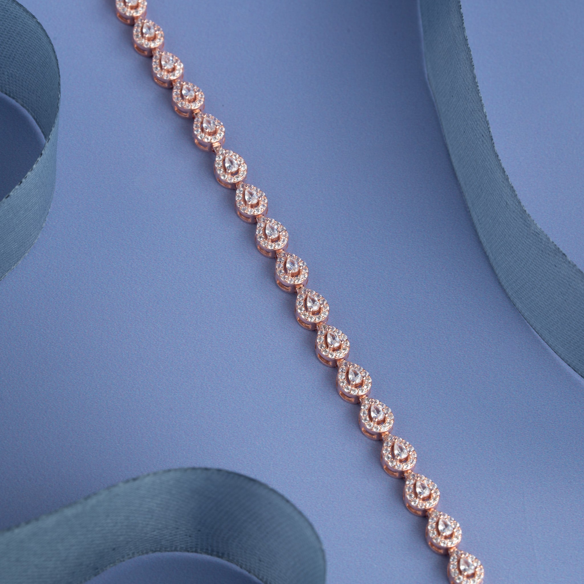 Design: Teardrop motif bracelet studded with American Diamonds.