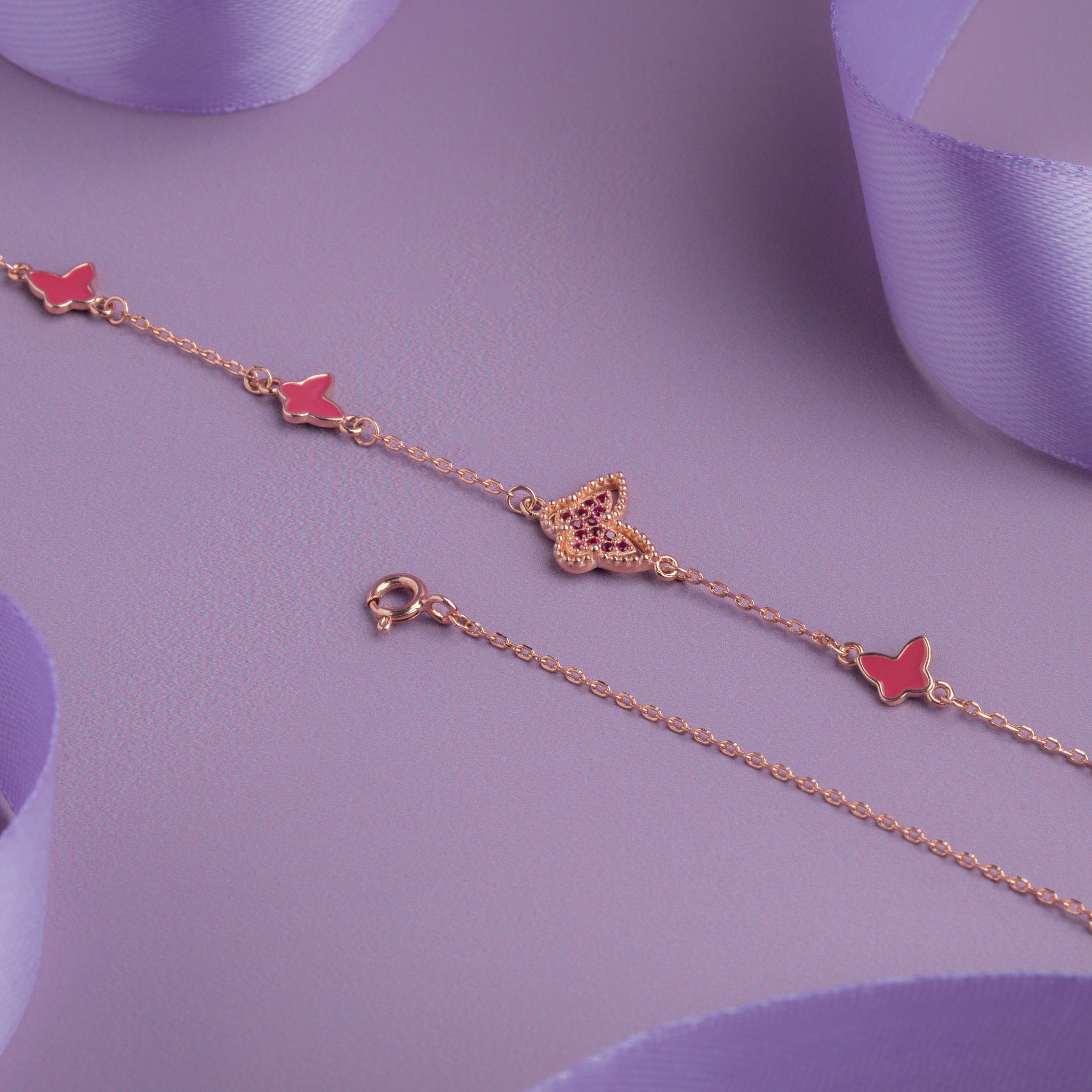 • Design: Butterfly charms with rose gold plating