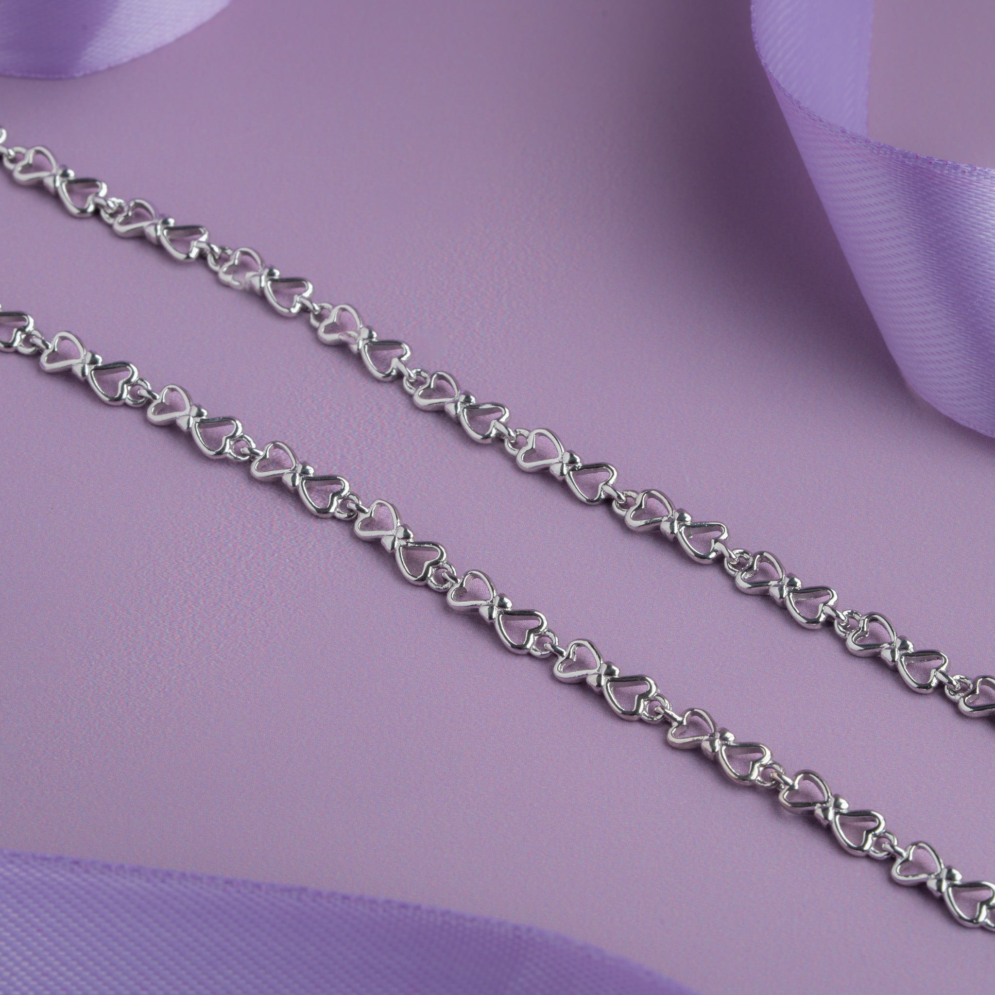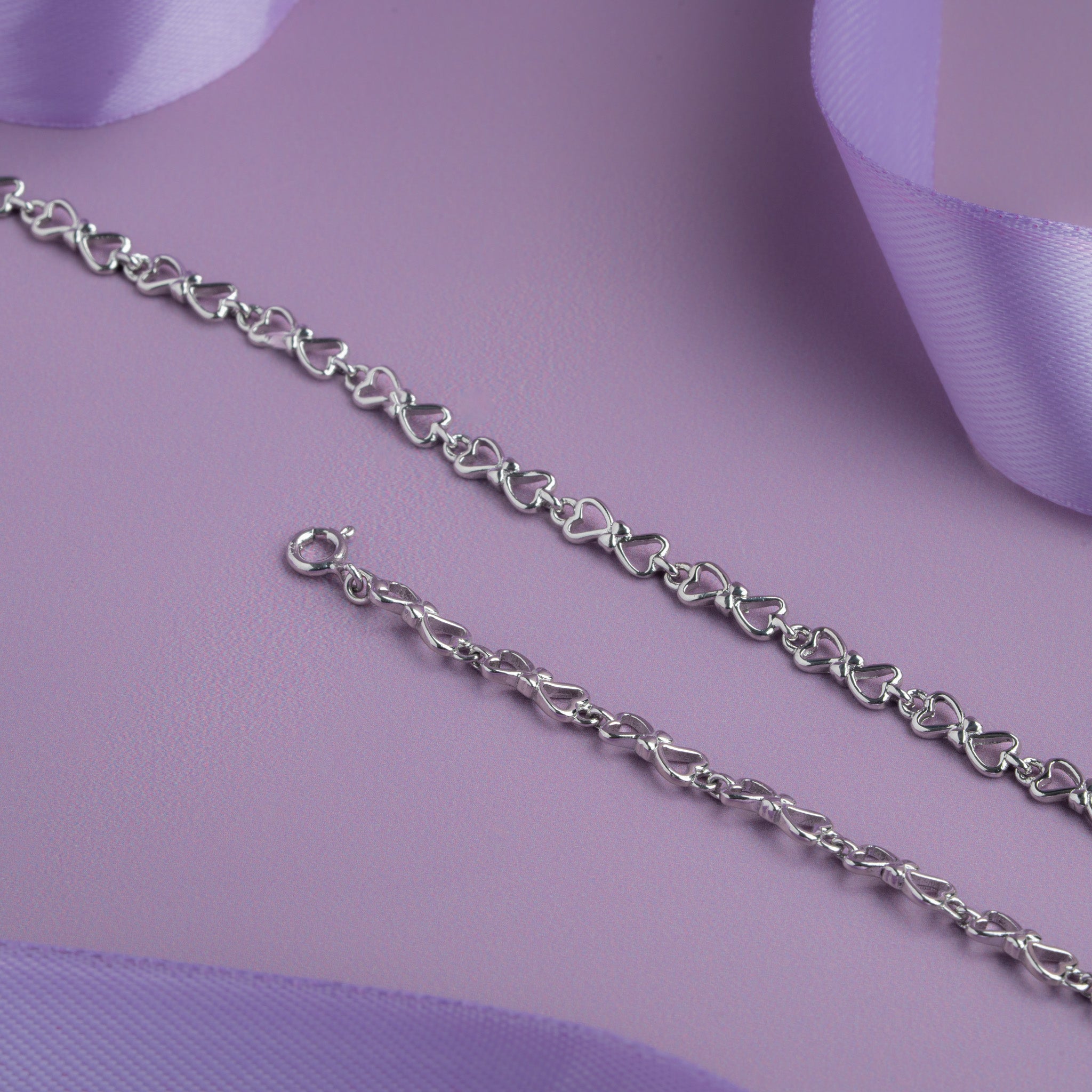 Silver heart link anklet with delicate interlocking heart design