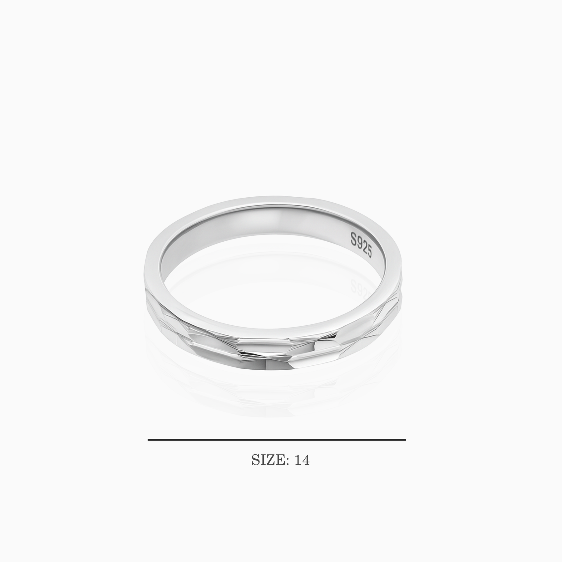 Made from 92.5 sterling silver, this Size 14 ring features a distinct hammered-texture finish that adds a handcrafted touch while creating subtle reflections under the light. Its unique matte texture gives it a rustic yet refined appearance — making it perfect for both casual and formal wear.